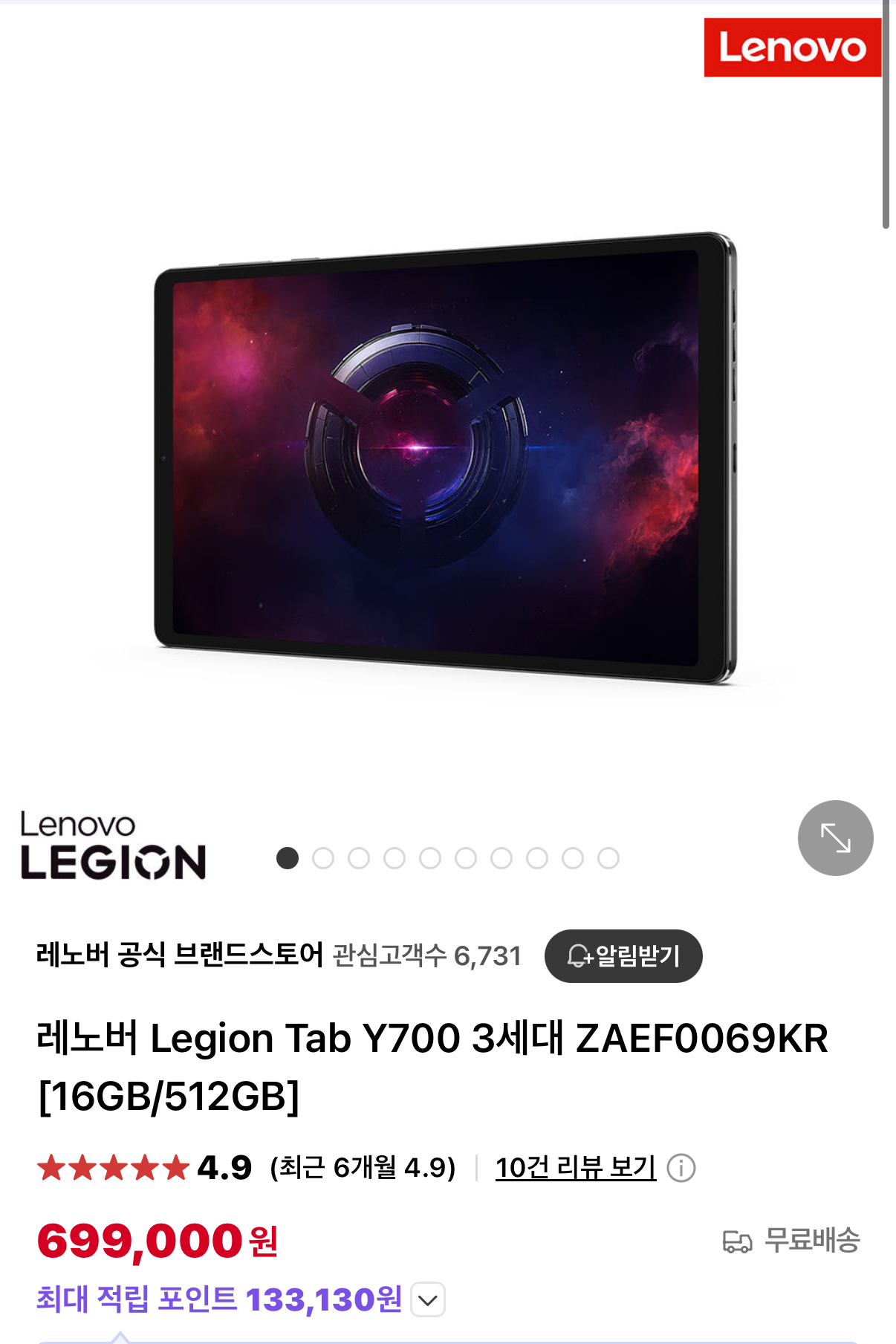 [네이버] 레노버 Legion Tab Y700 3세대 (599,100원/무배)