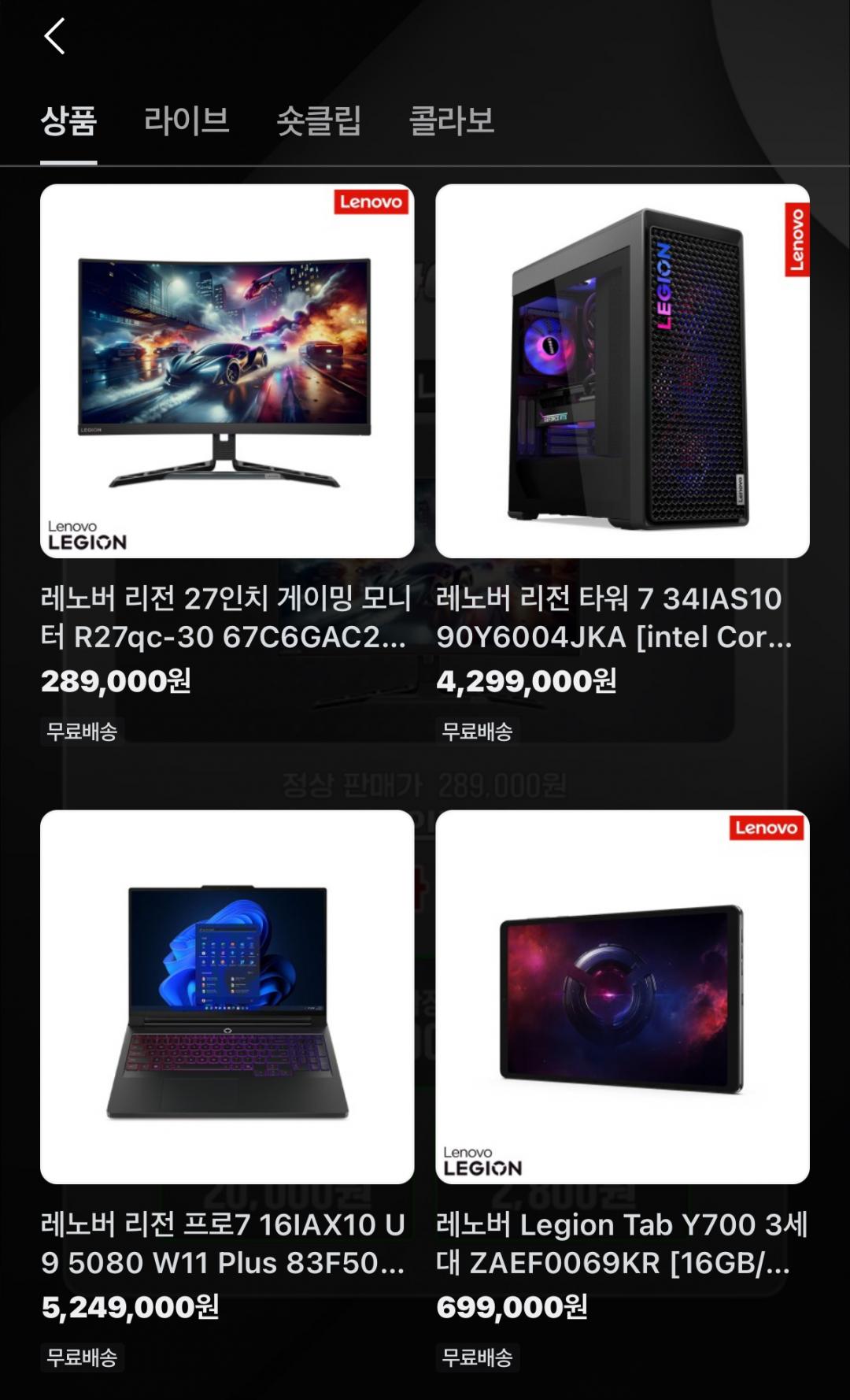 레노버 게이밍 에코시스템 쇼핑 라이브중인데