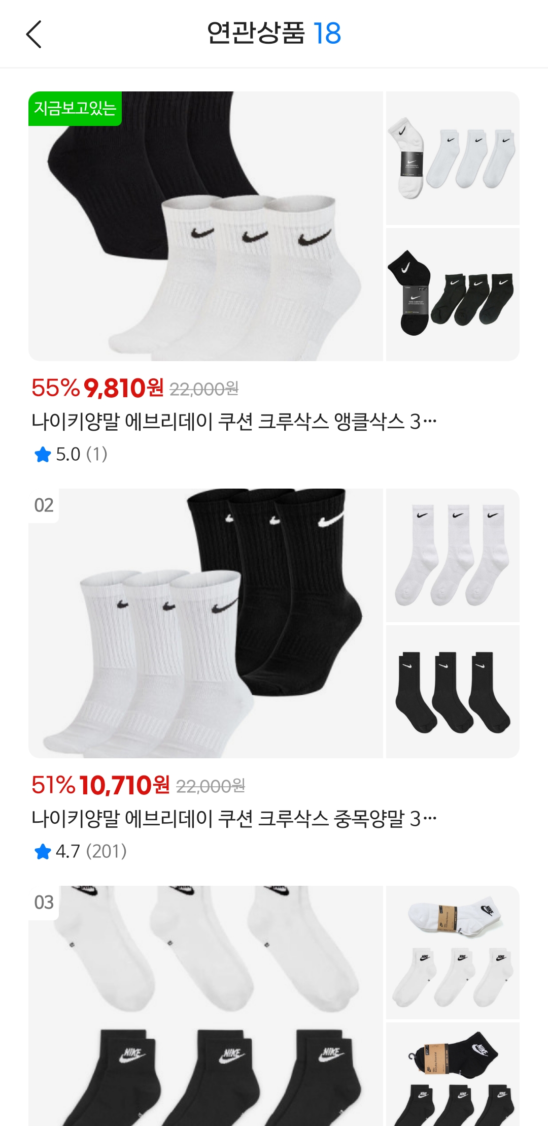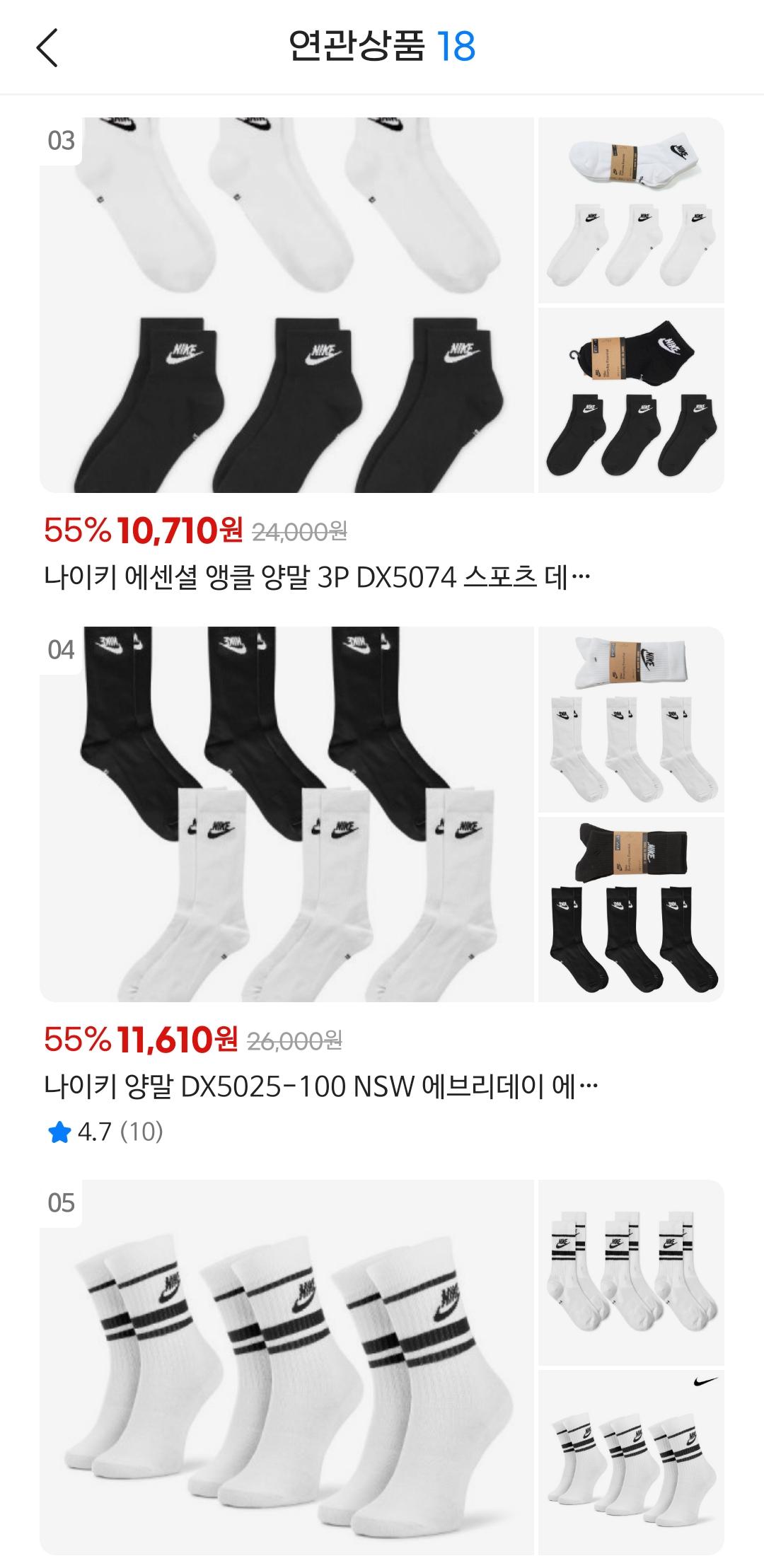 나이키 양말 단목 3켤레 기준으로 9,810원 나옵니다.