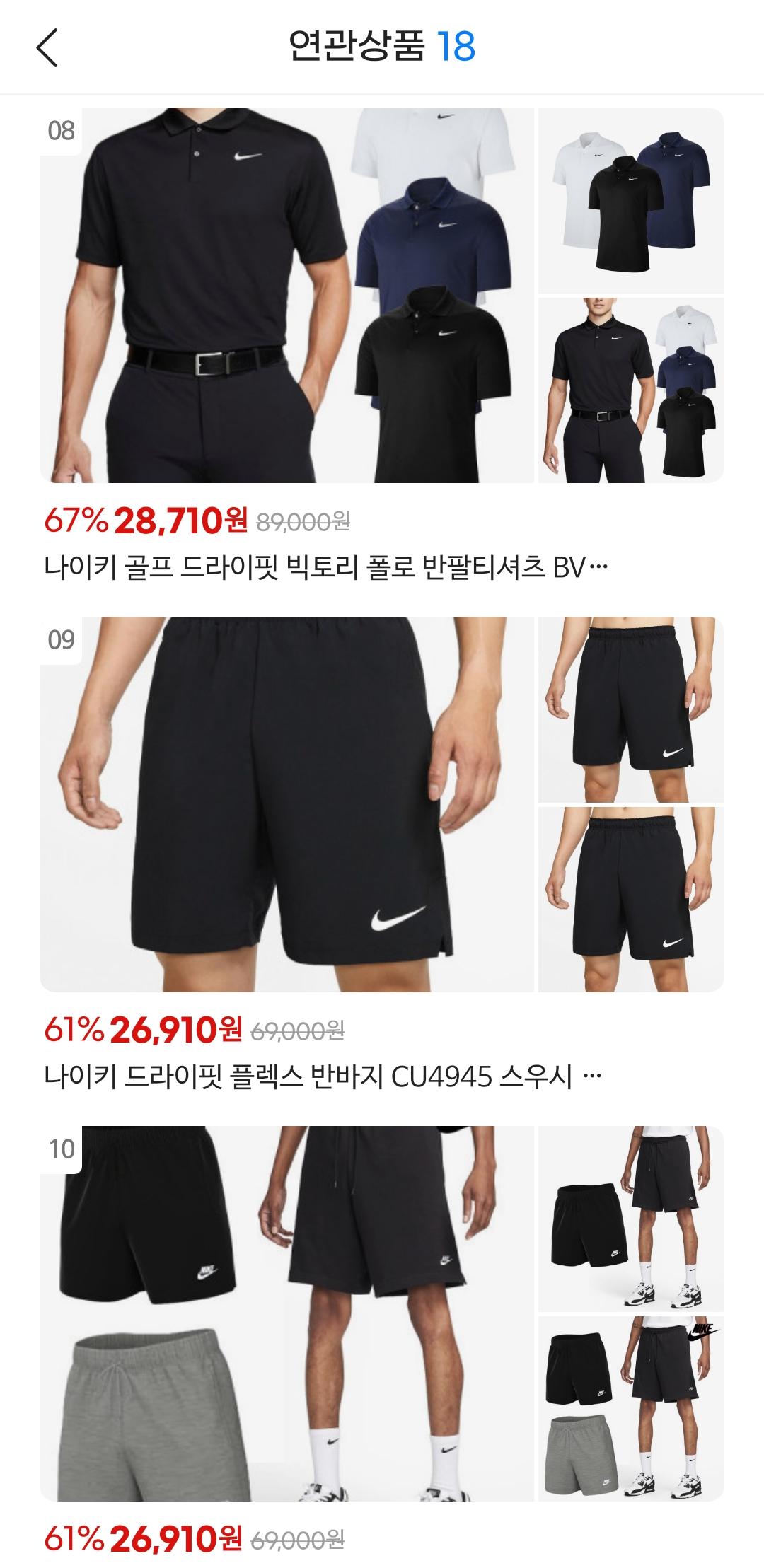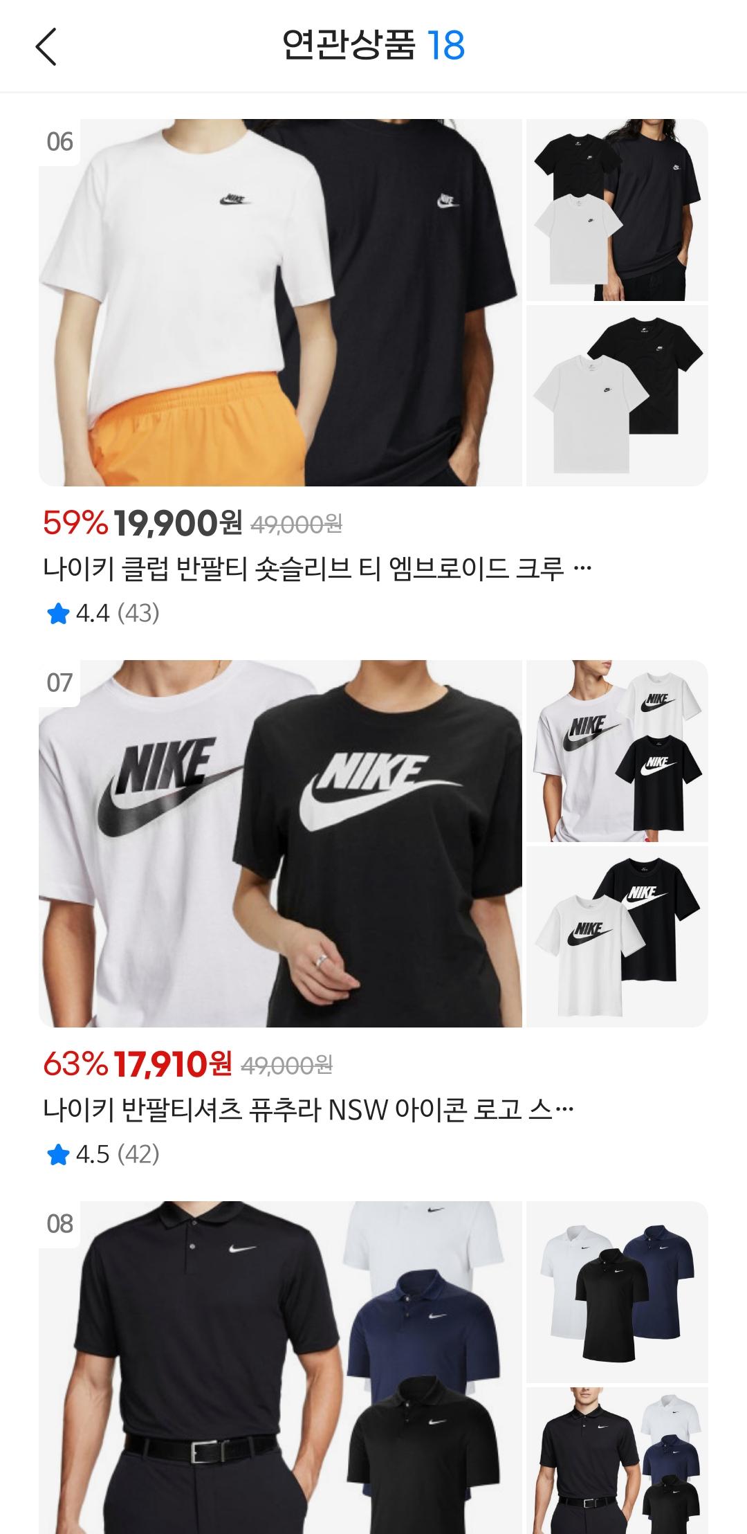 나이키 반팔도 가격 저렴하구요.