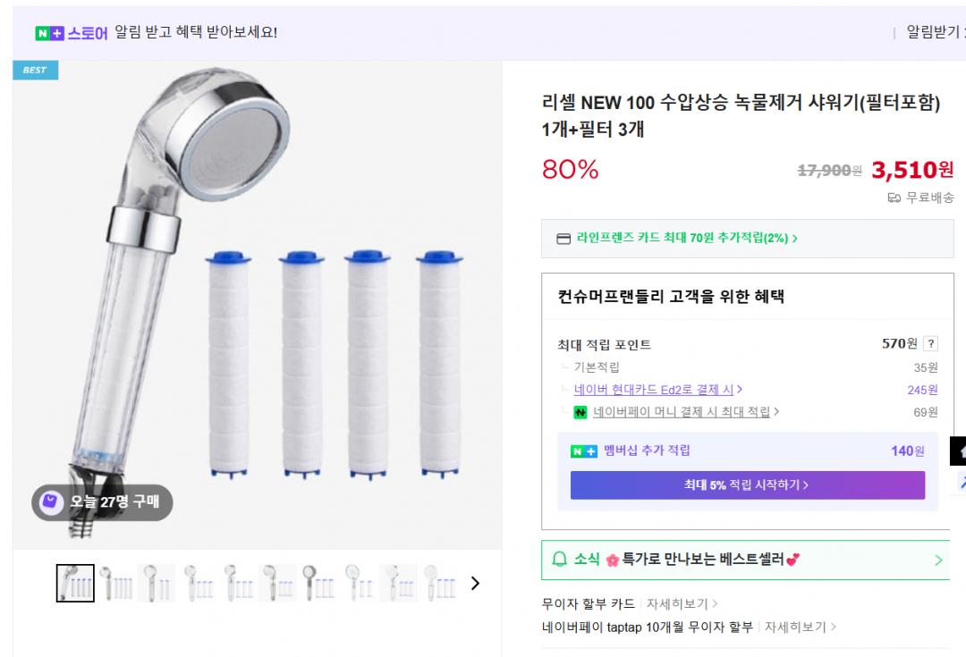 [네이버] 수압상승 녹물제거 샤워기+필터 3개 3,510원/무배 > 국내핫딜