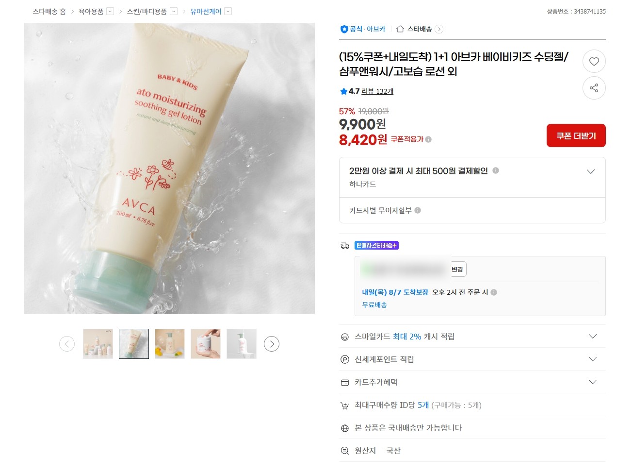[지마켓] 아브카 베이비 앤 키즈 아토 모이스처라이증 수딩 젤 로션 200ml 2개 (8,420원/무배) > 국내핫딜