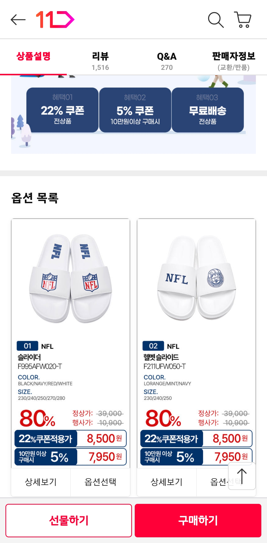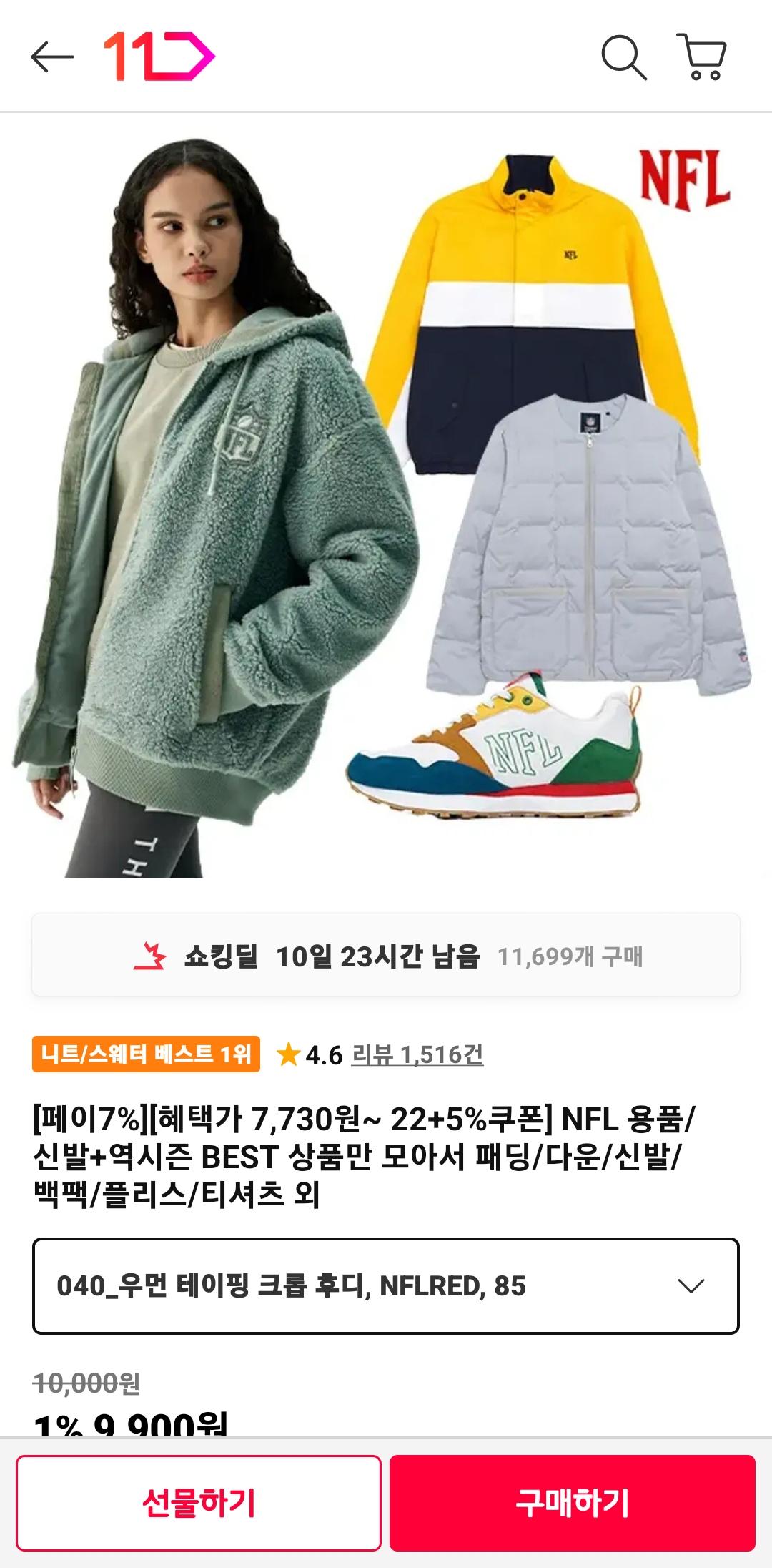 [11번가] NFL 용품/신발+역시즌 다운/신발/백팩/플리스/티셔츠 외 (7,730원~/무료) > 국내핫딜