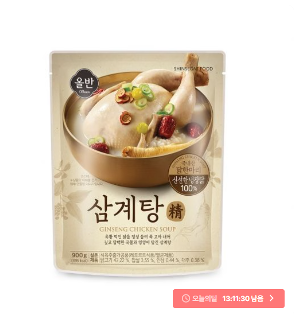 ​[오늘의집] 올반 삼계탕 정 900g 5팩 (24,219원/무료)