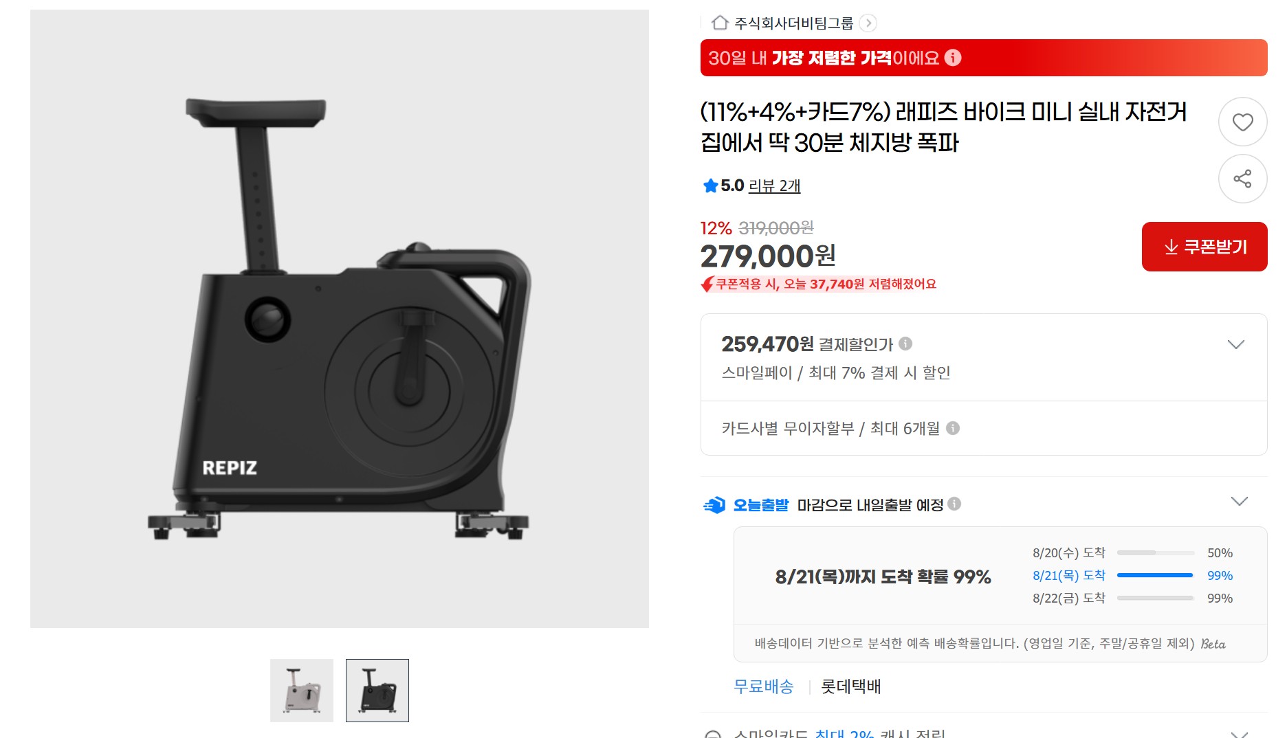 [지마켓] 래피즈바이크 실내자전거 (231,570원/무배) > 국내핫딜