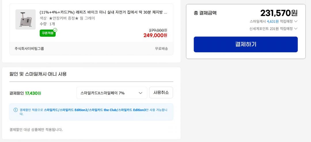 쿠폰+결제하기 가서 카드할인까지 받은 가격이에요