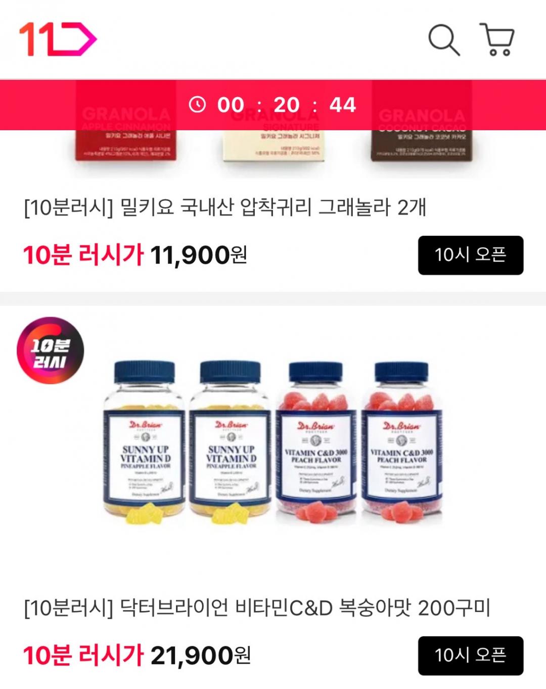 [11번가] 닥터브라이언 비타민C&D 3000 복숭아맛 100구미 2통 (21,900원/무료) > 국내핫딜