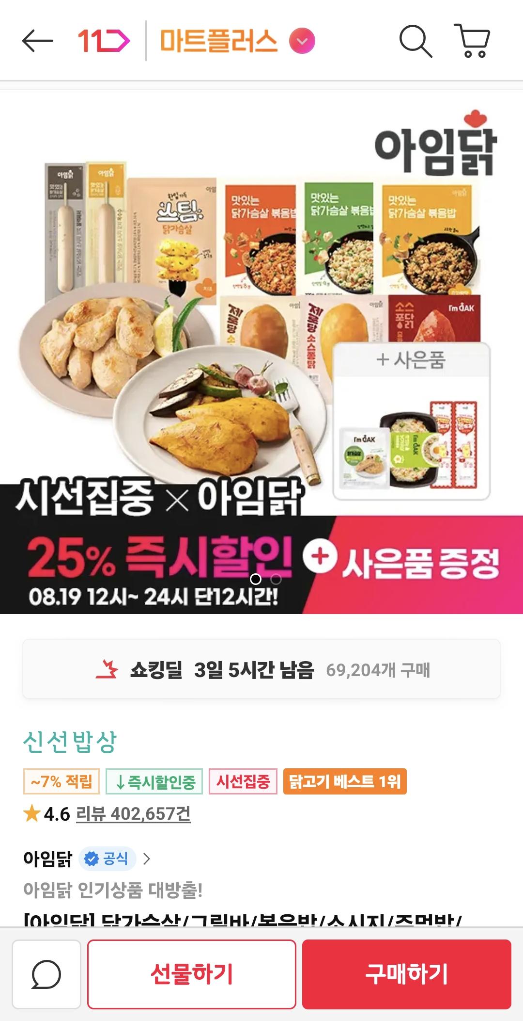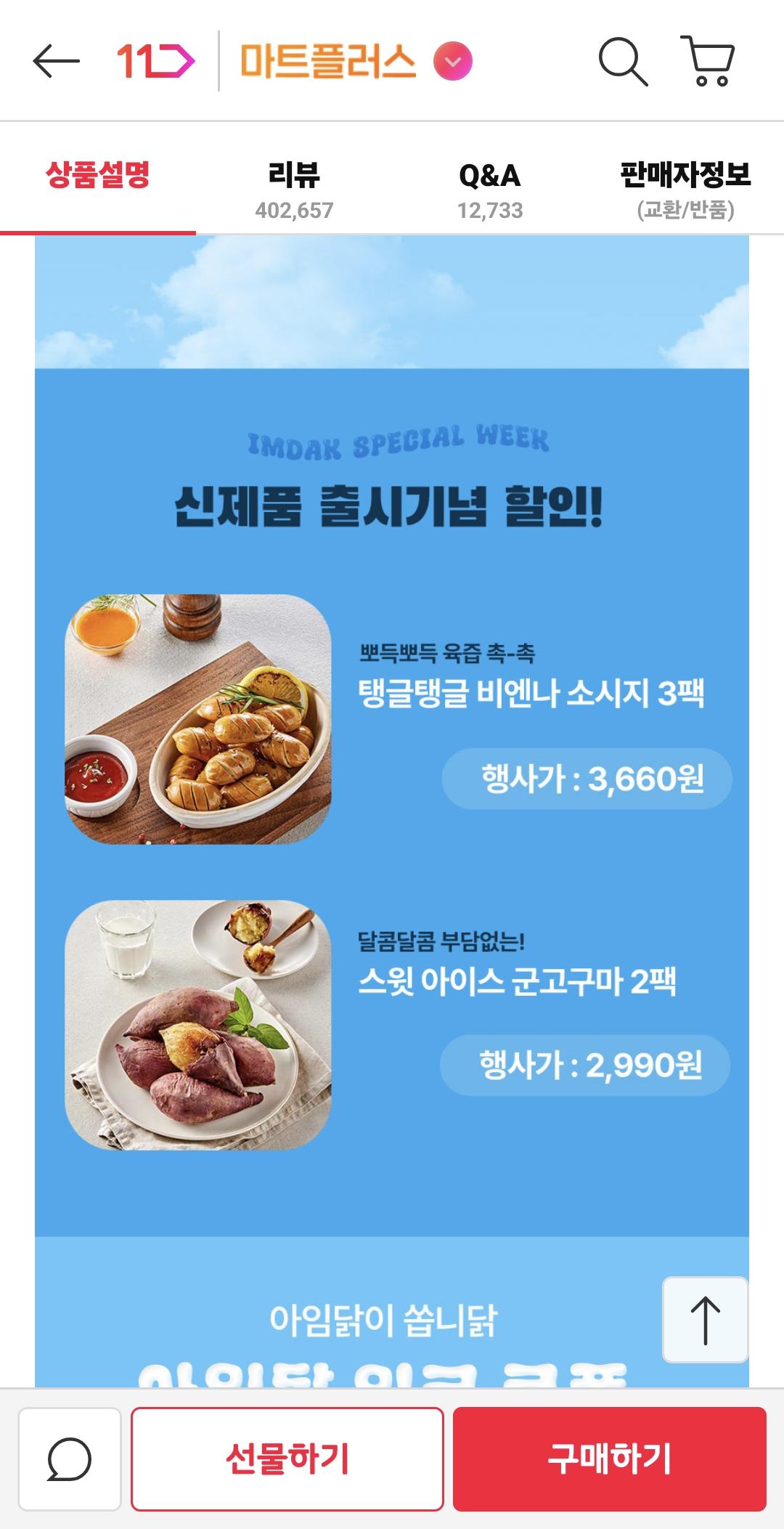 아임닭 행사중이라 공유드립니다. 팩당 1천원대 초반이라 가격 괜찮습니다. 간식용으로 괜찮아서 쟁여 놓습니다.