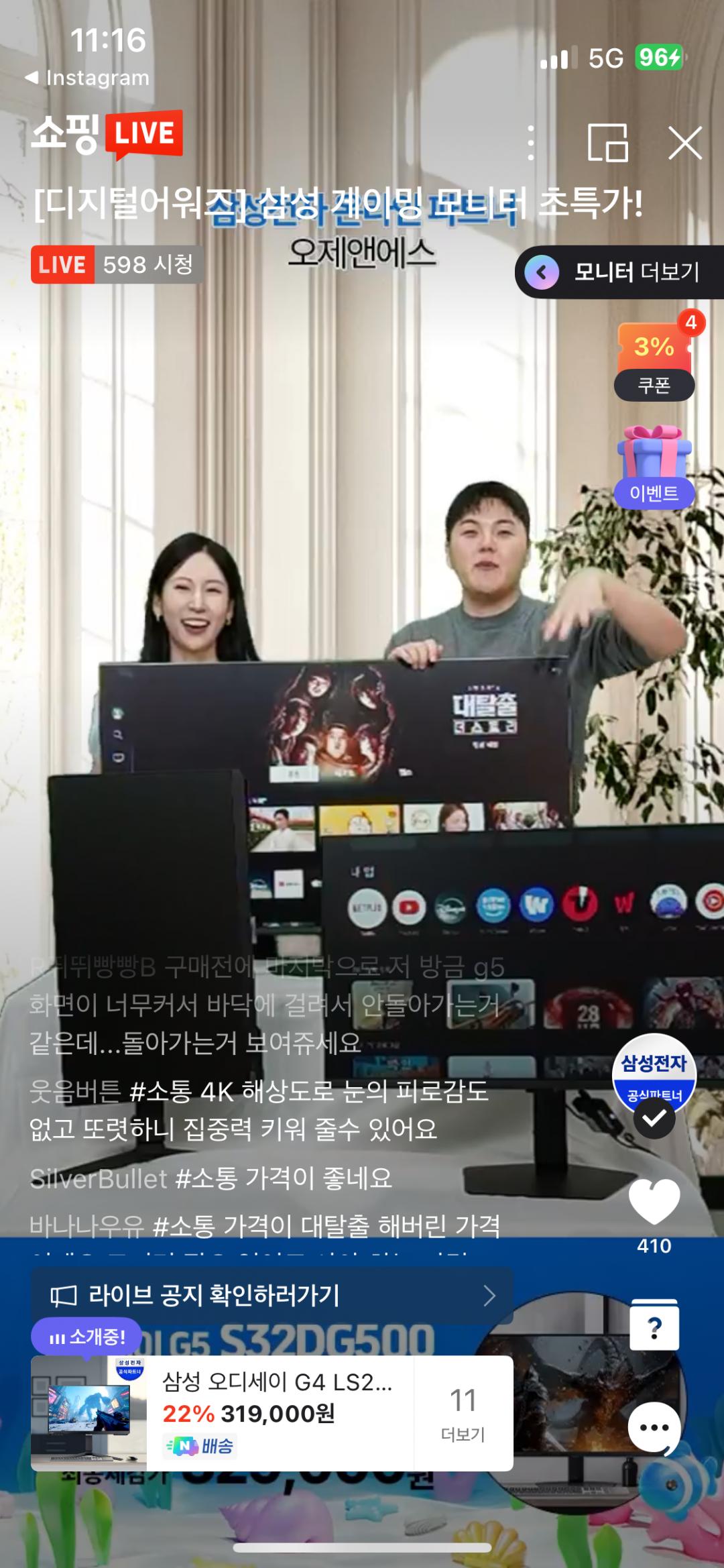 [네이버] 삼성 오디세이 G4 LS27BG400 68.4cm 게이밍 모니터 IPS 240Hz 1ms (245,000원/무료)