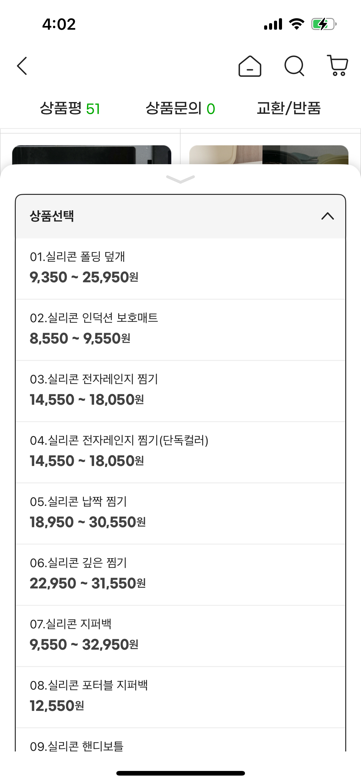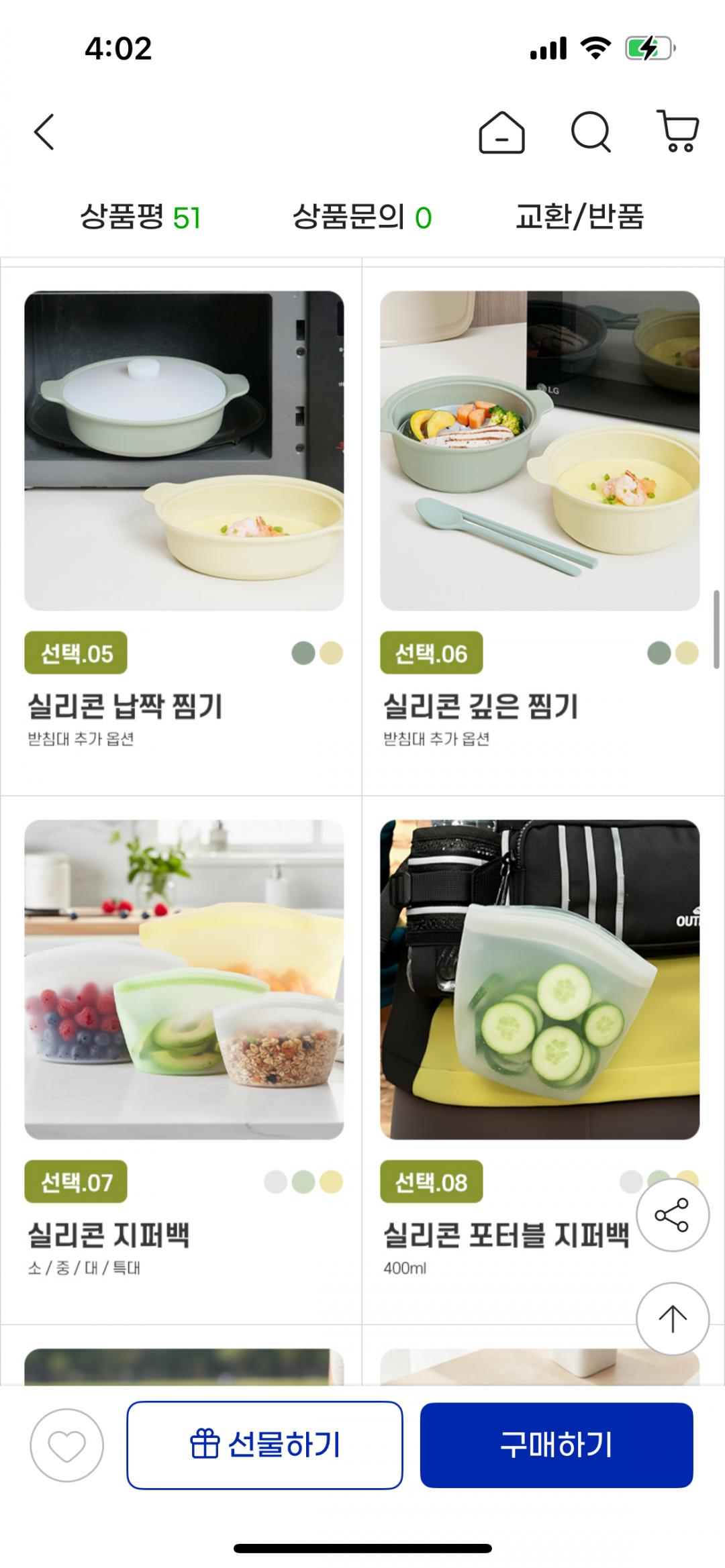 실리콘 덮개, 찜기, 지퍼백 등등 종류 다양해요!