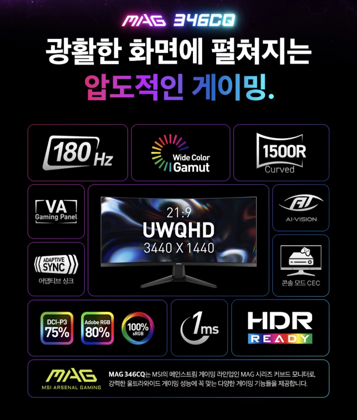 최신 21:9 비율 34인치 신형 UWQHD IPS 모니터이고