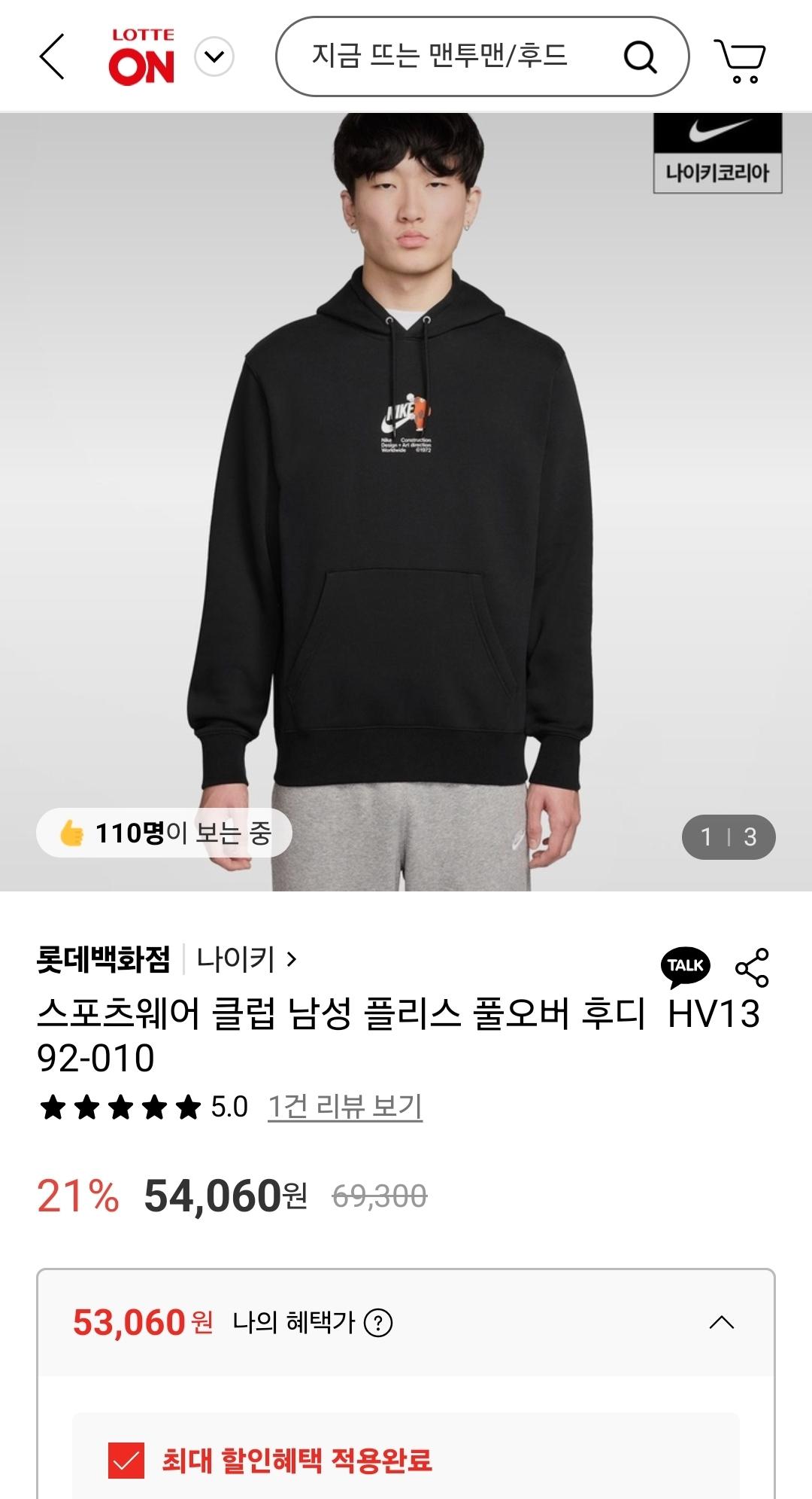 [롯데온] 나이키 스포츠웨어 클럽 남성 플리스 풀오버 후디 (53,060원/무료) > 국내핫딜
