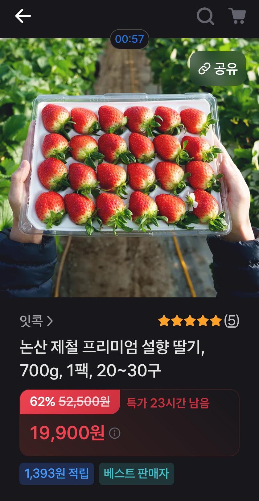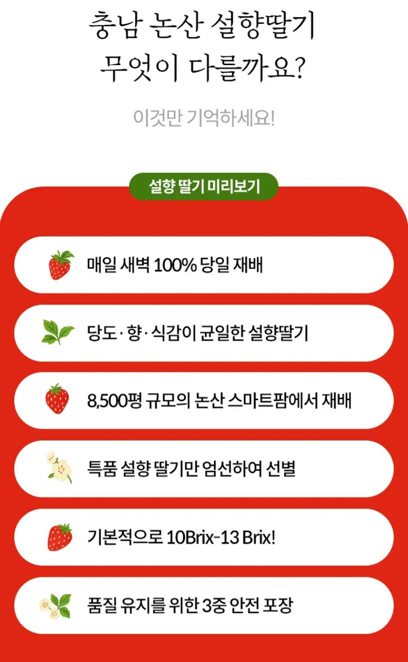 [토스] 논산 제철 프리미엄 설향 딸기 700g 1팩 20~30구 (19,900원/무료) > 국내핫딜