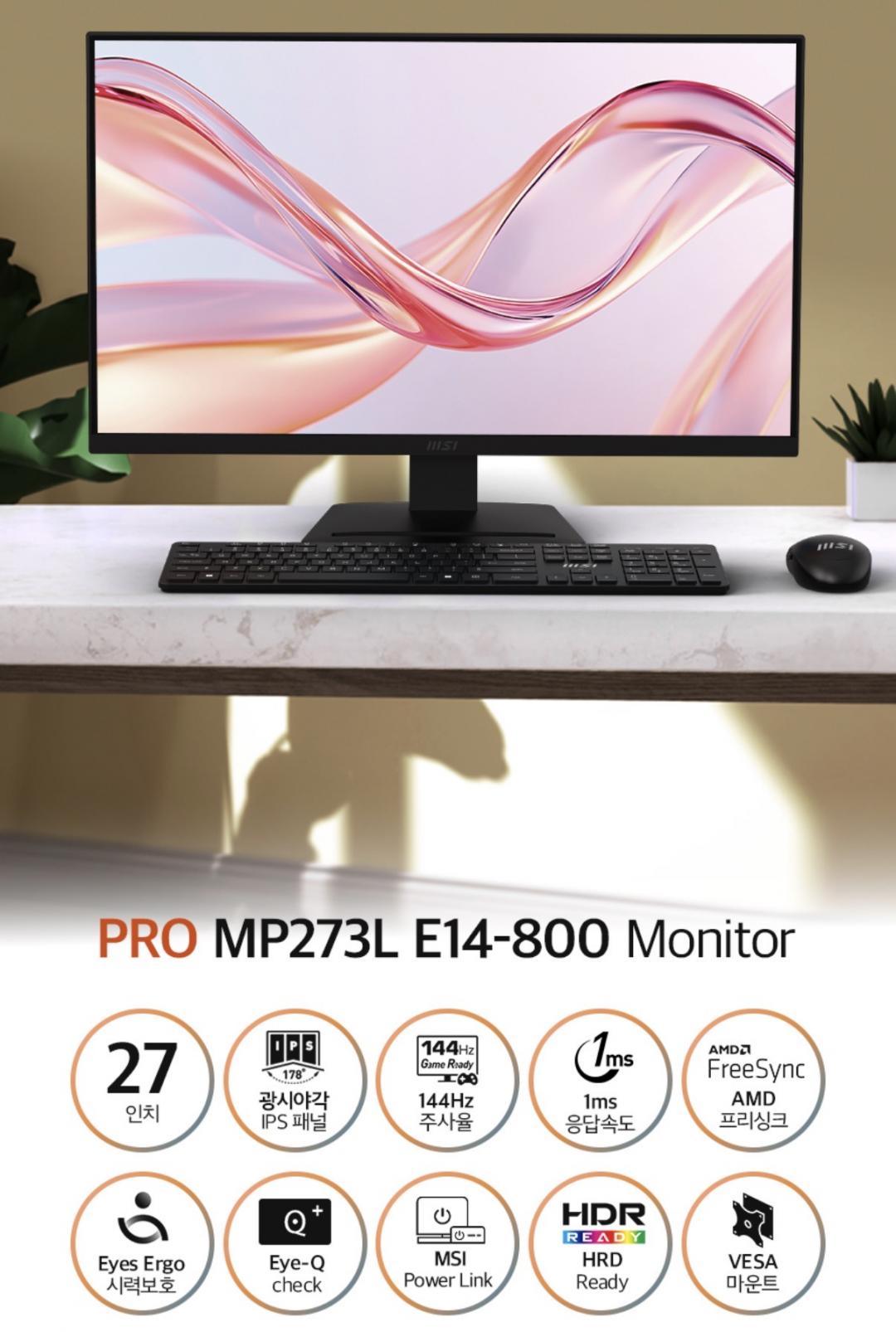 [G마켓] MSI PRO MP273L E14-800 IPS 144 시력보호 게이밍 무결점 모니터 (99,310원/무배)