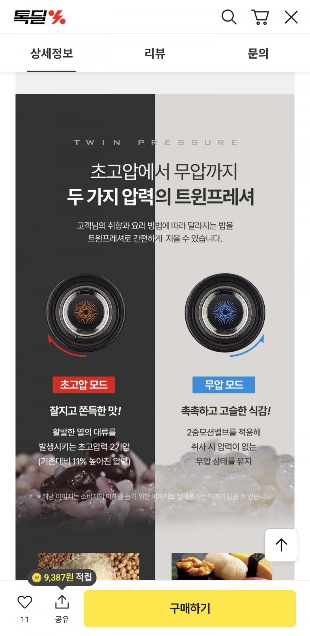 트윈프레셔라 초고압, 무압 골라서 취사 가능하고