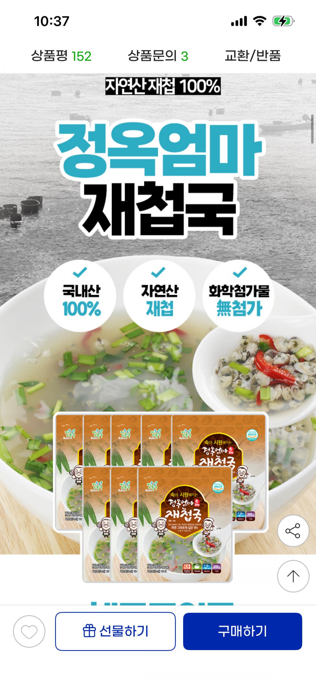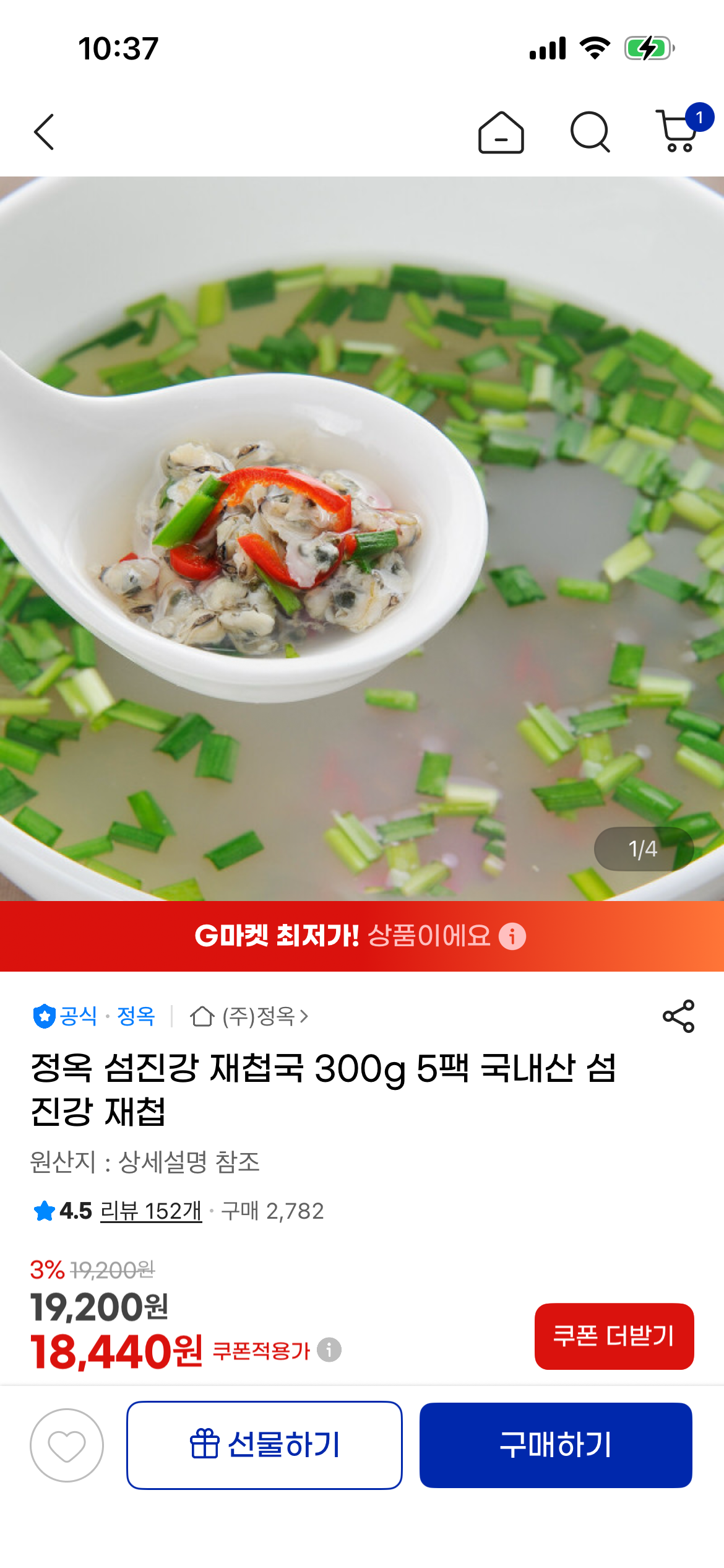 [지마켓] 정옥 섬진강 재첩국 300g 5팩 (가격/배송비) > 국내핫딜
