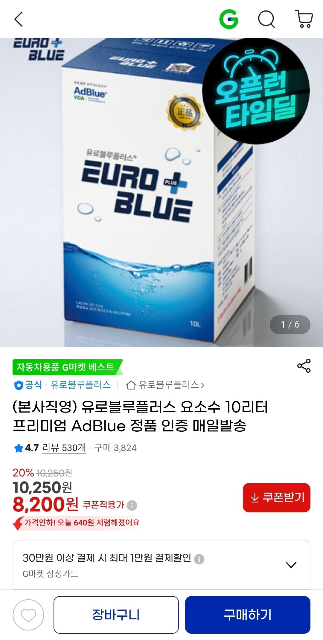 [지마켓]유로블루플러스 요소수 10리터 8200원 / 무료 > 국내핫딜