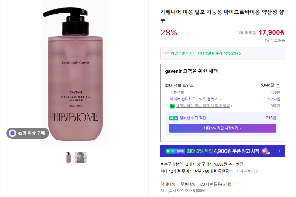 [네이버스토어] 가베니어 여성 탈모 기능성 약산성 샴푸 (17900원/무배) > 국내핫딜