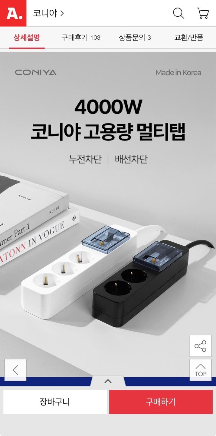 [옥션] 코니야 국산멀티탭 모음전 3200W 난연소재 (8,330원~/무배)