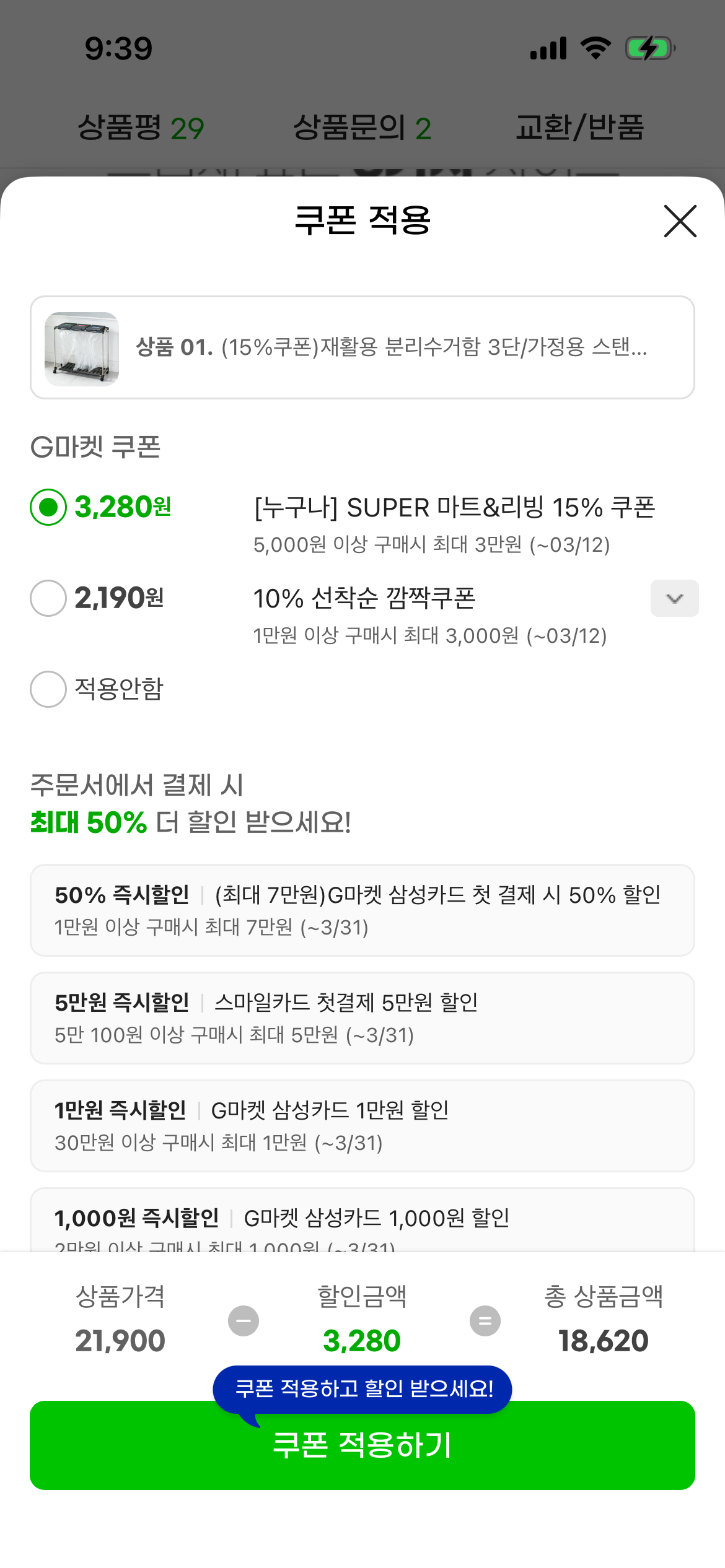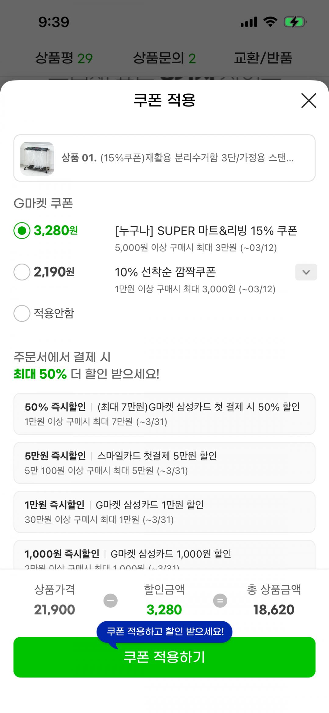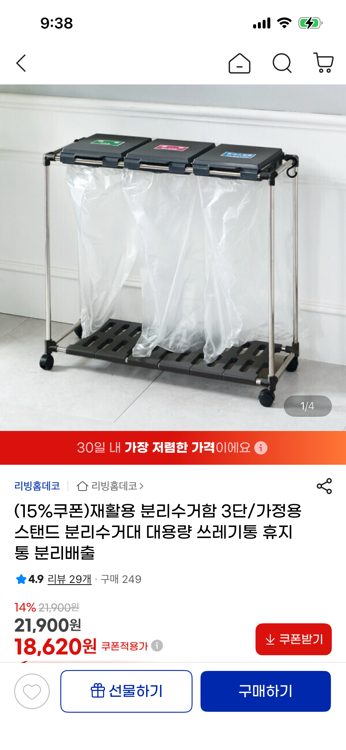 [지마켓] 가정용 스탠드 분리수거 (18,620원/무료)