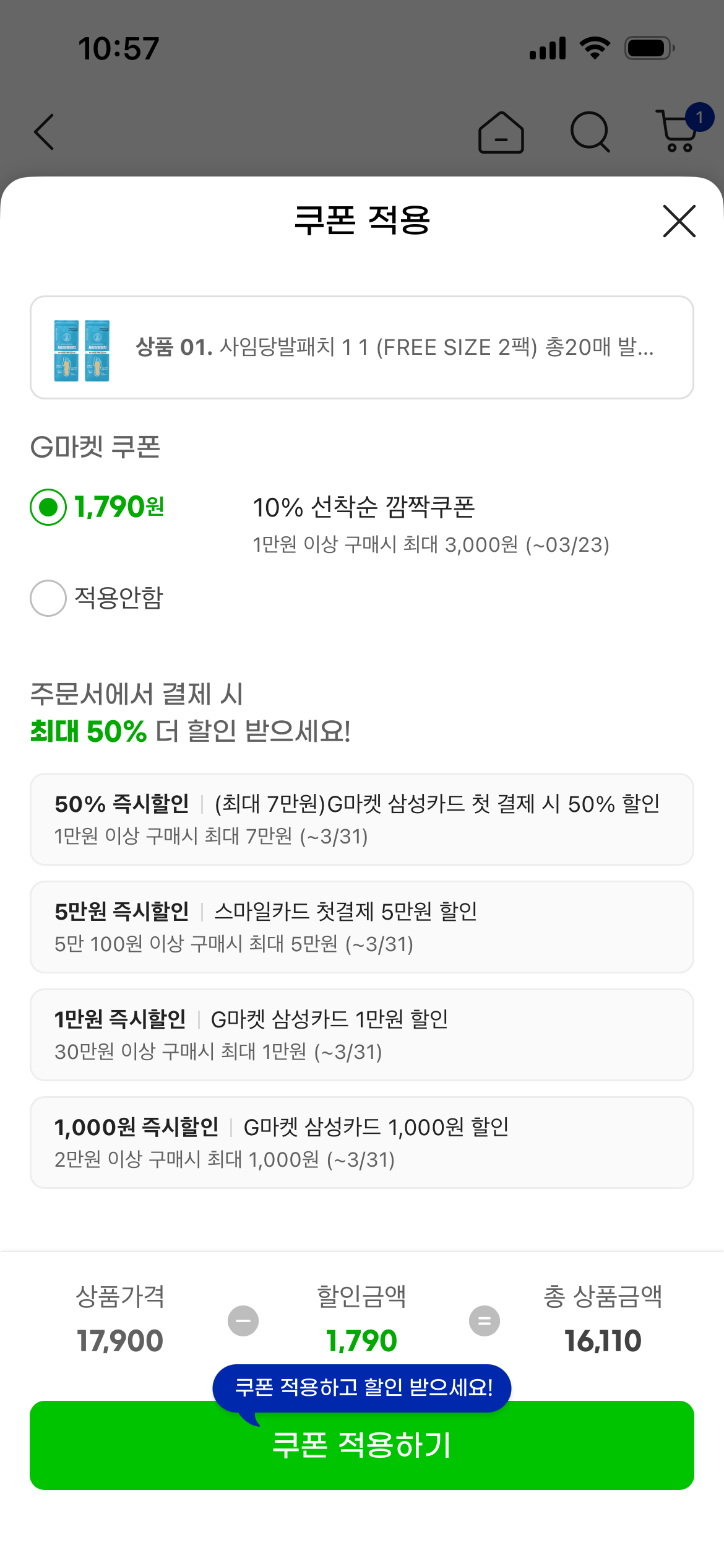 [지마켓] 사임당발패치 1+1 (FREE SIZE 2팩) 총20매(16,110원/무료) > 국내핫딜