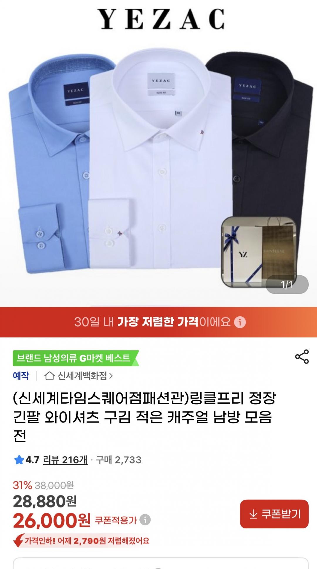 [지마켓] 예작 링클프리 정장 긴팔 와이셔츠 구김 적은 캐주얼 남방 모음전(26,000원/무배) > 국내핫딜