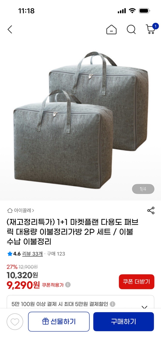 [지마켓] 마켓플랜 다용도 패브릭 대용량 이불정리가방 2P 세트(가격/배송비) > 국내핫딜