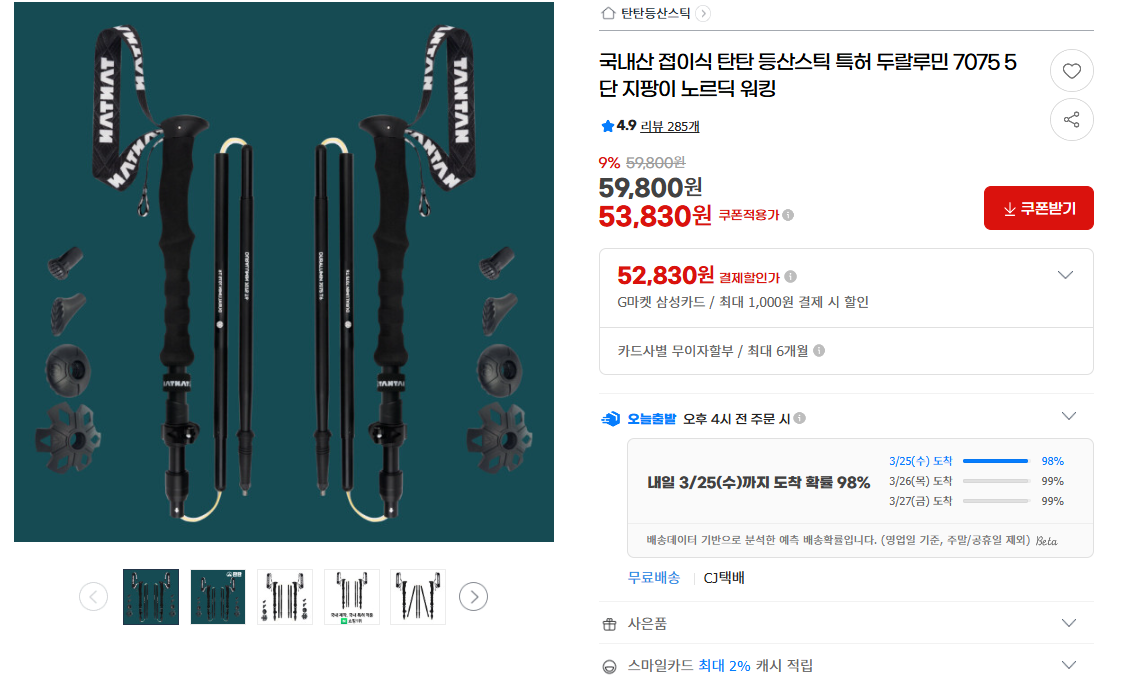 국내 제작이라 마감 깔끔하고 5단 접이식이라 배낭에 쏙 들어가는 사이즈입니다.