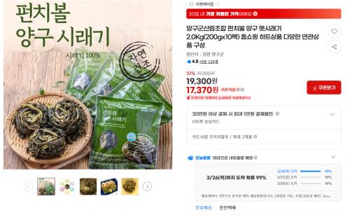 양구 펀치볼 시래기 유명한데 2kg 구성으로 1.7만 원대면 가격 상당히 괜찮네요.