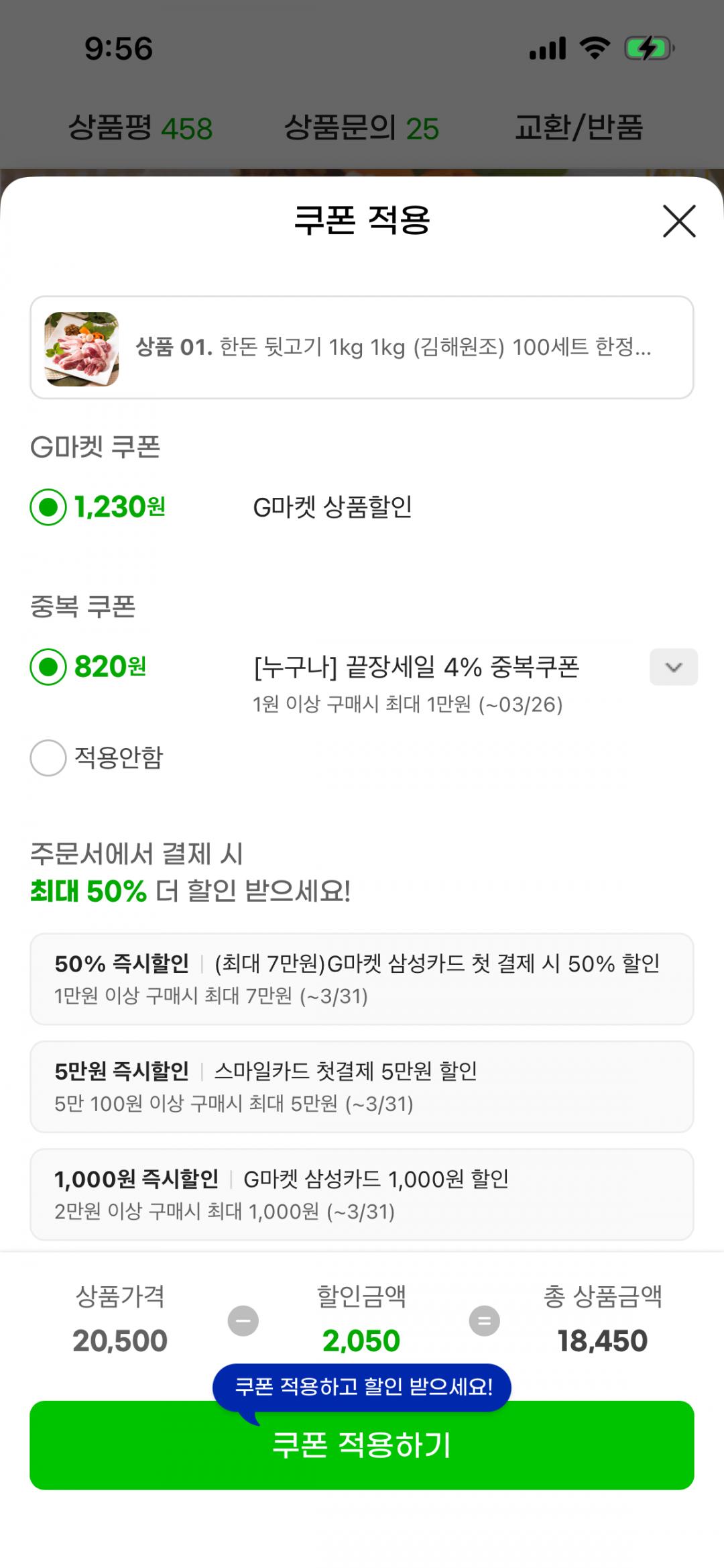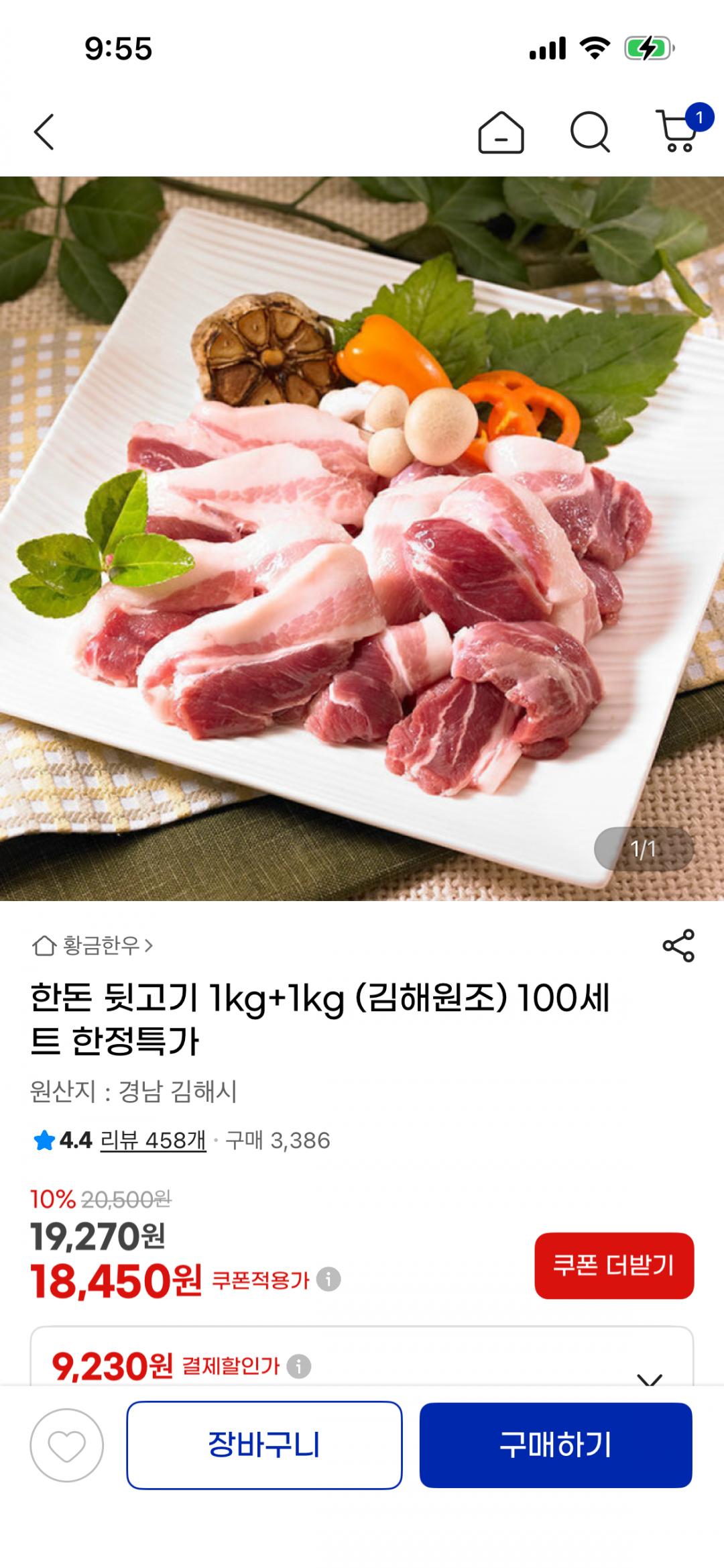 [지마켓]한돈 뒷고기 1kg+1kg (18,450원/무료)