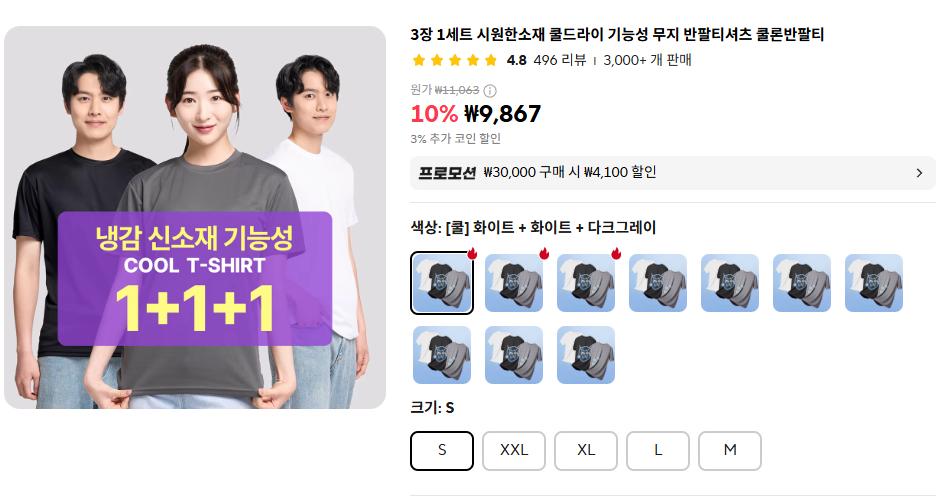 [알리] 쿨 티셔츠 3장 세트 (9,867원/무배) > 국내핫딜