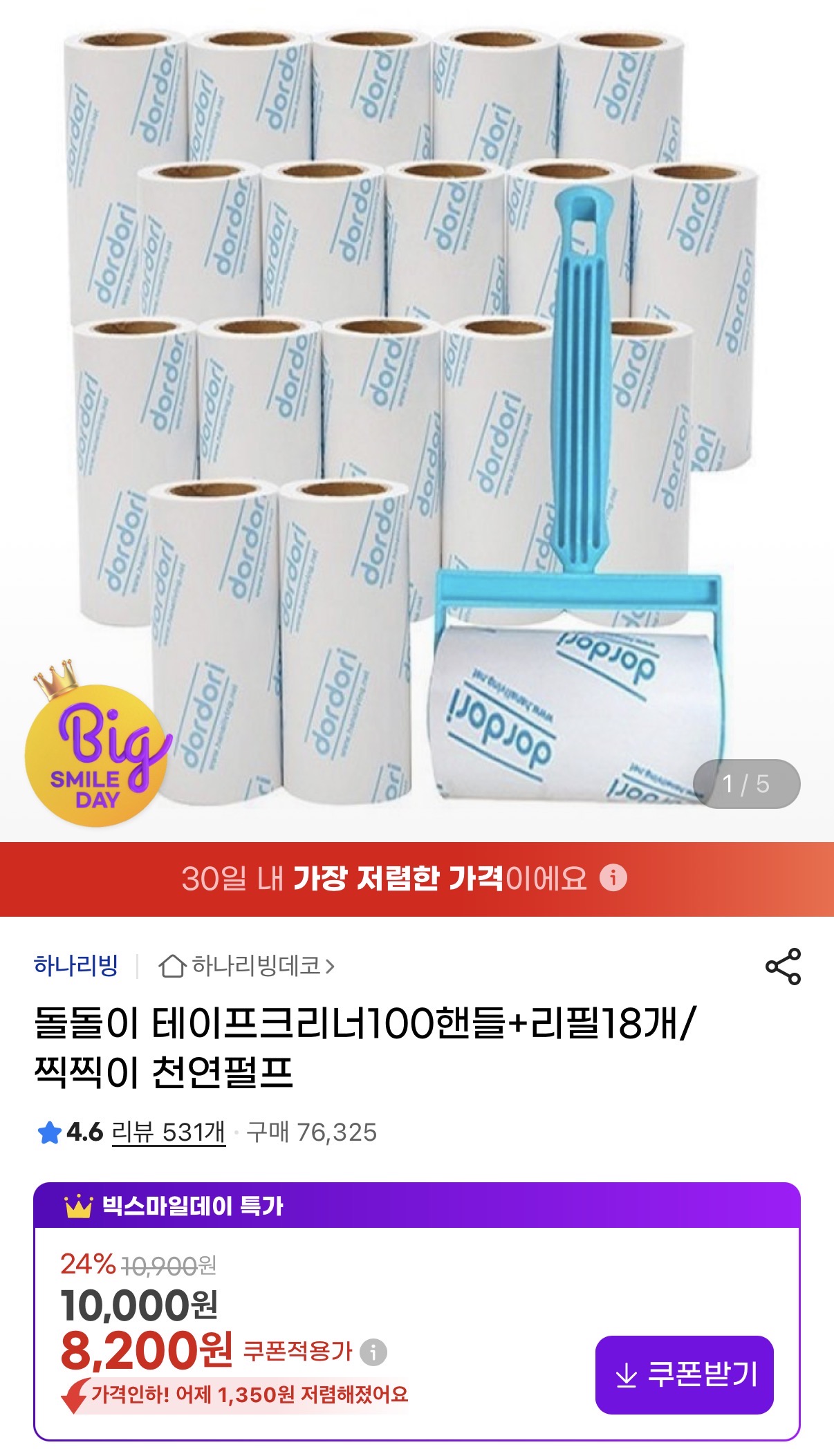 [지마켓]돌돌이 테이프크리너 100핸들+리필18개 (6,200원/무배)