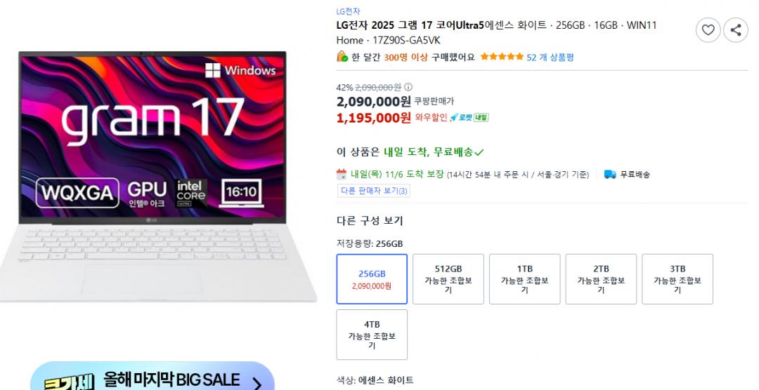 [쿠팡] 엘지 그램 17Z90S-GA5VK (1,195,000/무료)