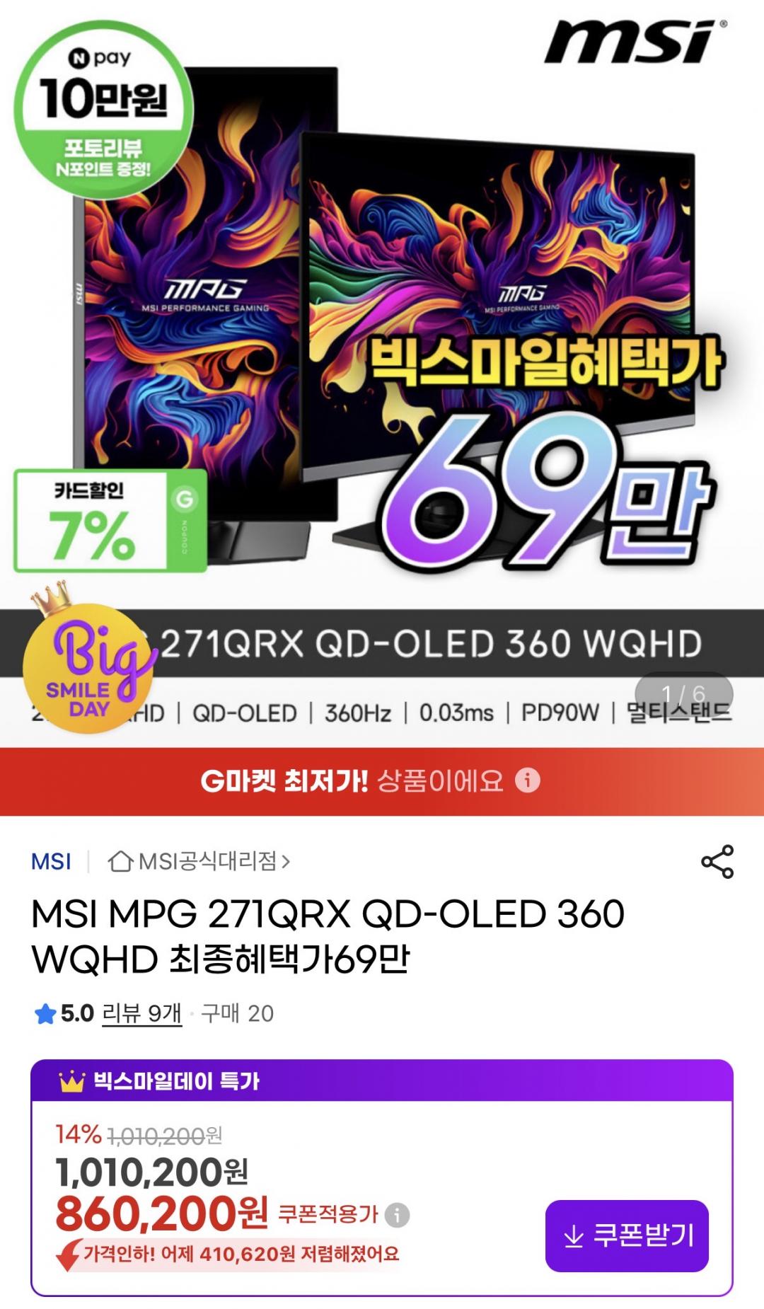 27인치 QHD 최상급 QD-OLED 모니터이고