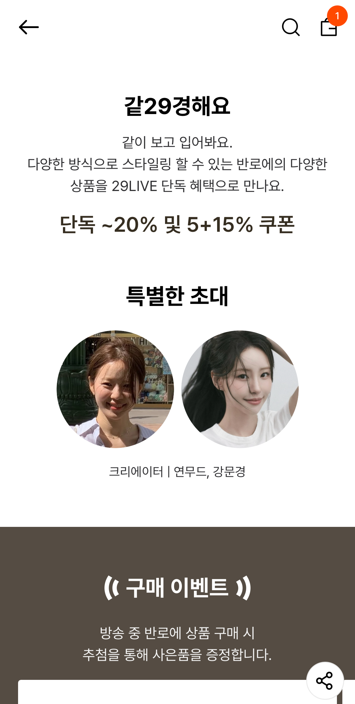 반로에 깔끔하고 예쁜데 29CM 라이브 혜택 괜찮네요