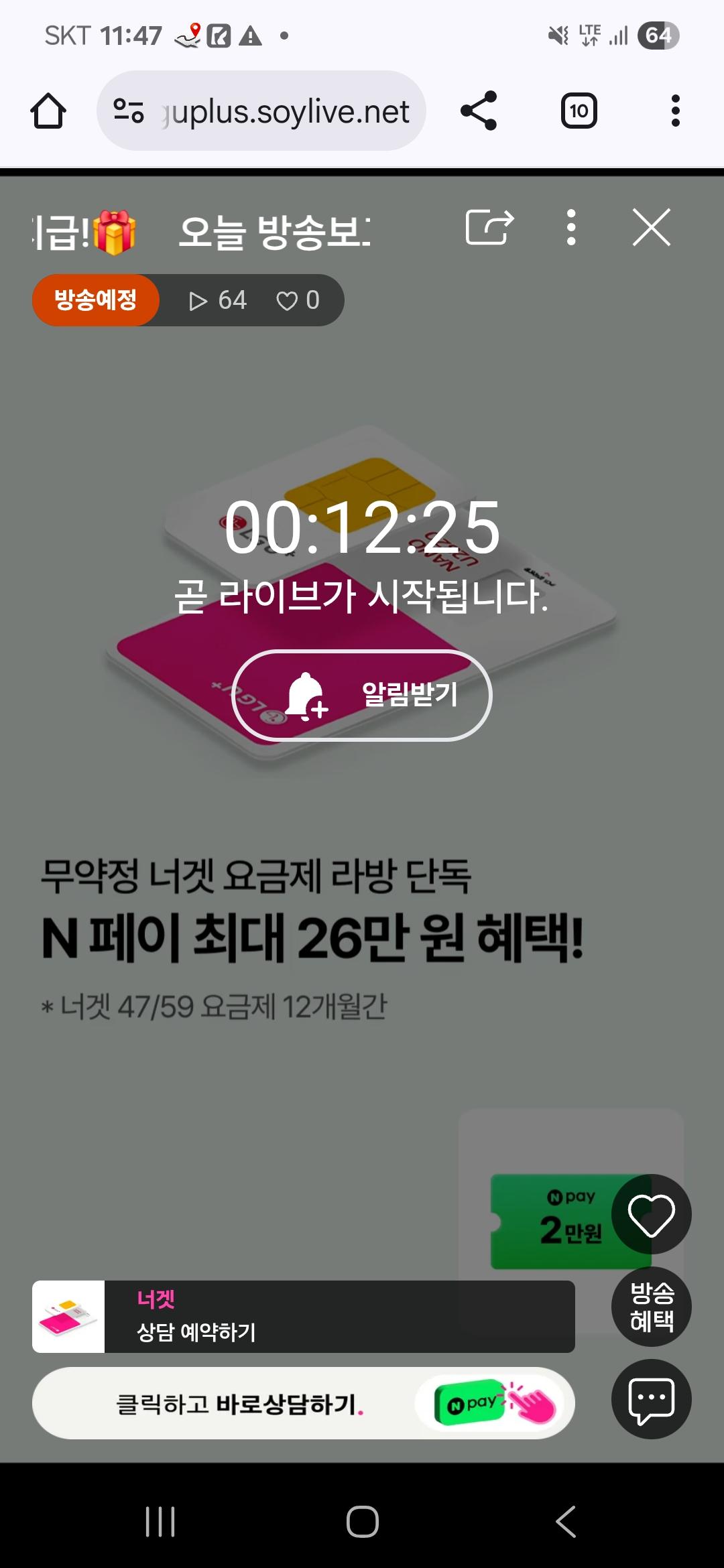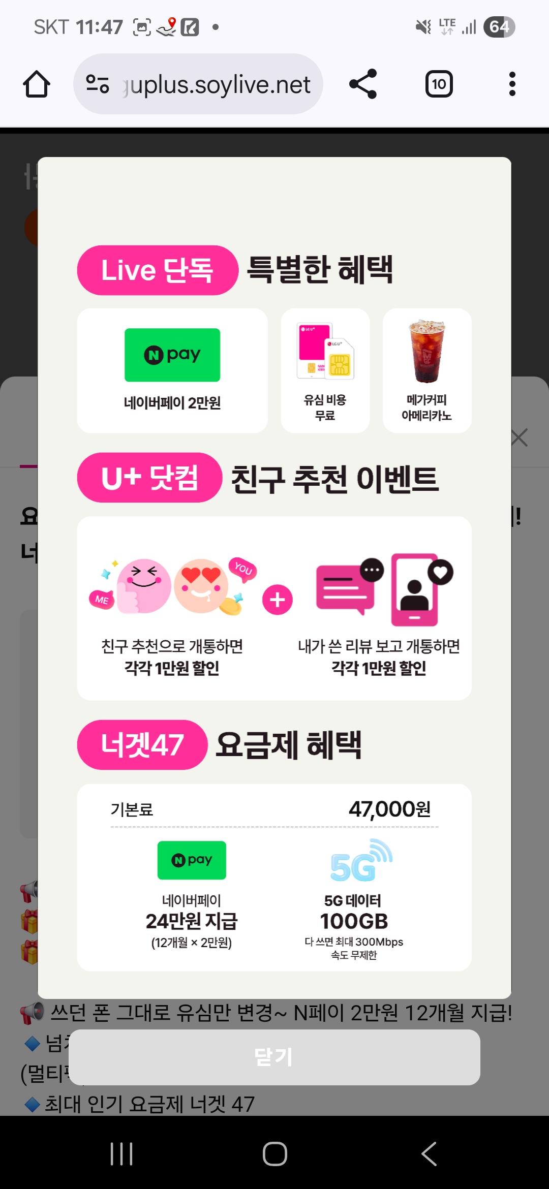 유플러스 너겟요금제 라이브 하는데, 가성비 요금제 찾는 분들은 47요금제 한번 보세요.