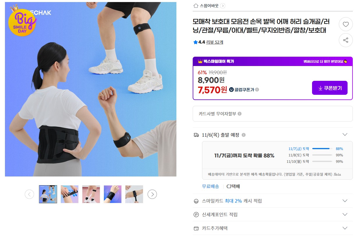 [지마켓] 모매착 보호대 모음전 손목 발목 어깨 허리 슬개골 (8,900원부터/무배)