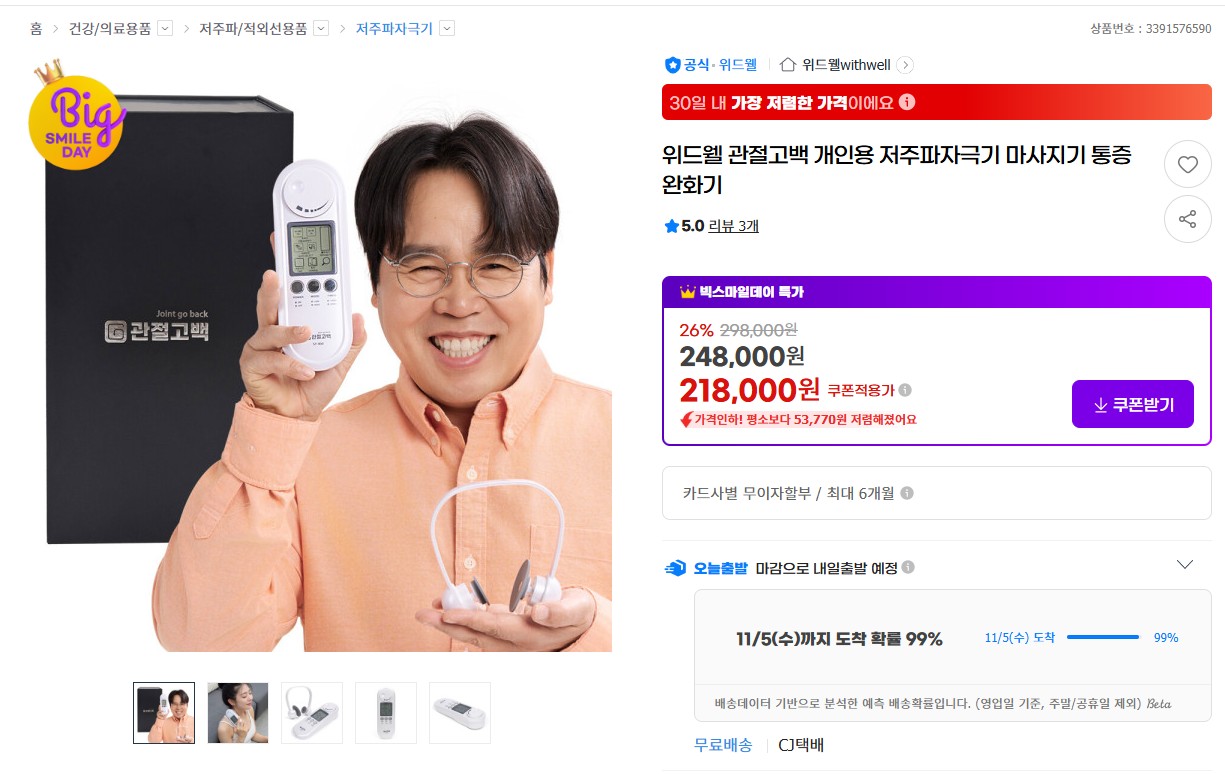 [지마켓] 위드웰 관절고백 개인용 저주파 자극기 근육통완화 (218,000원/무배)