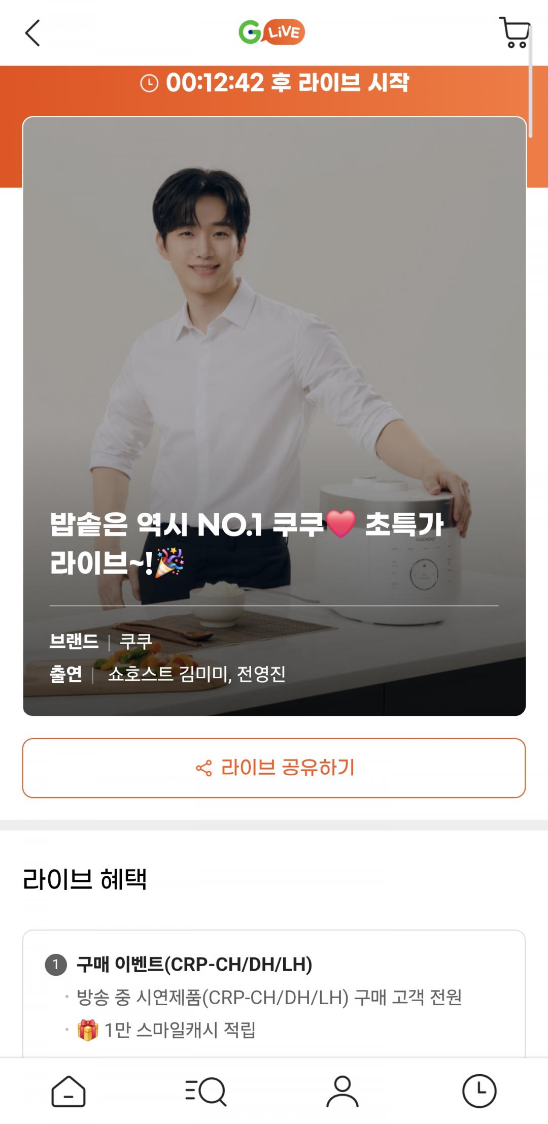 라이브 중 구매하면 스타벅스 기프티콘이랑 5% 스마일 캐시도 준대요