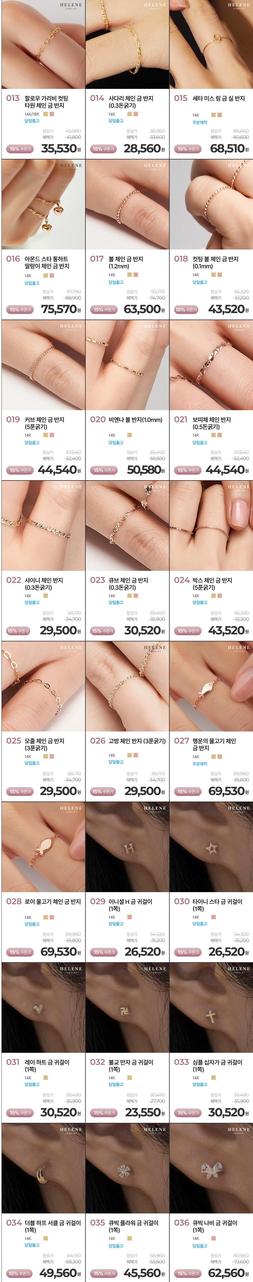 [지마켓] 엘린쥬얼리 14K/18K 반지 귀걸이 36종 모음전 (23,800원 등 다양/무배) > 국내핫딜