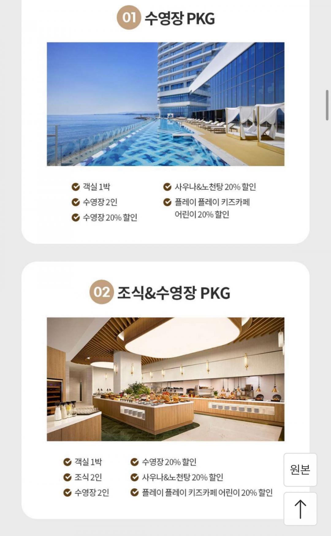 수영장 / 조식+수영장 패키지 두 가지 구성입니다