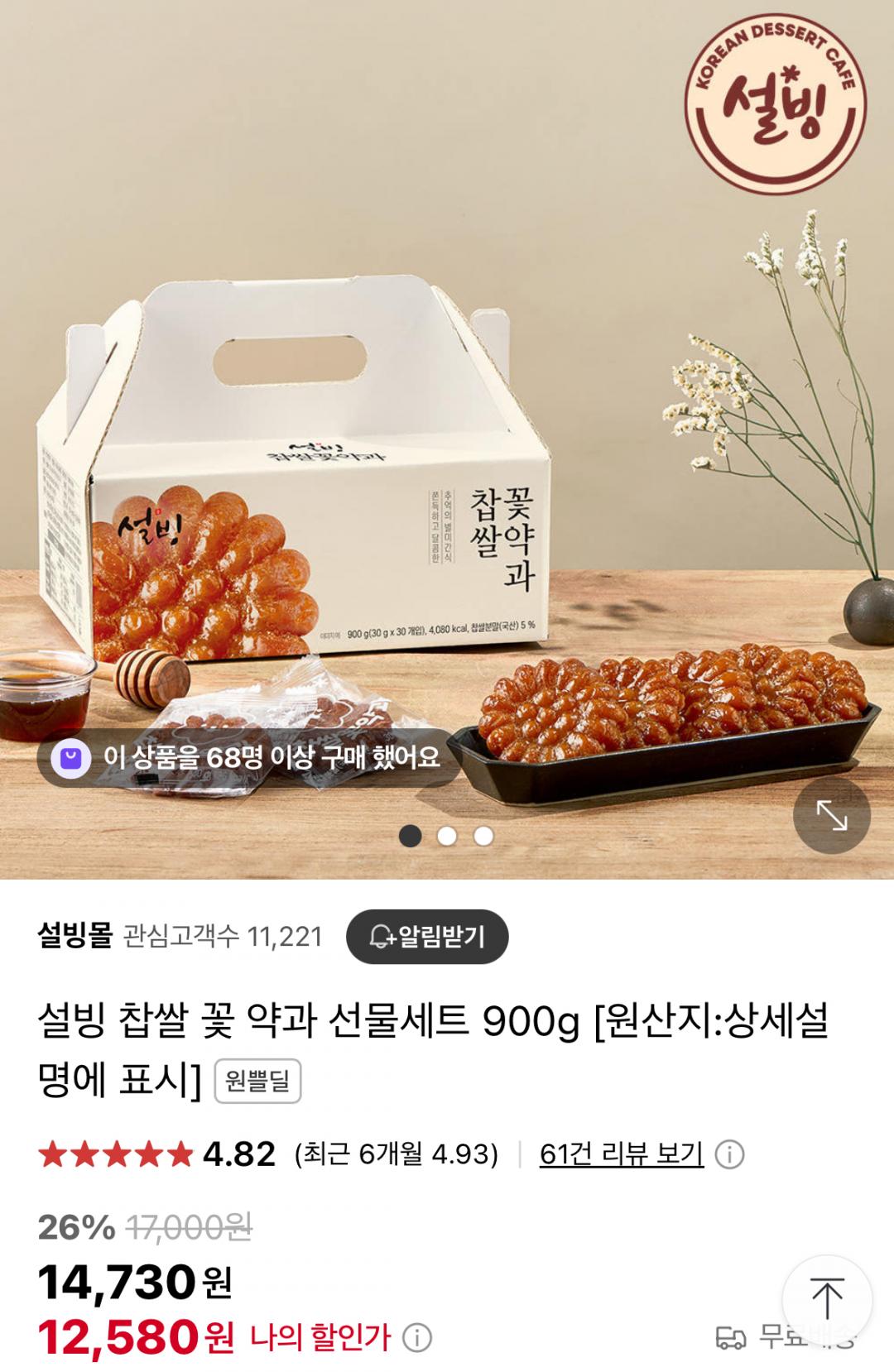 [네이버]설빙 찹쌀 꽃 약과 선물세트 900g (12,580원/무료)