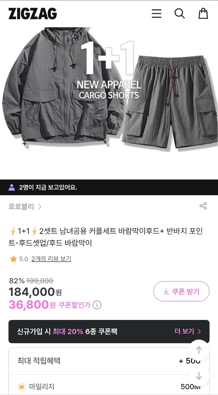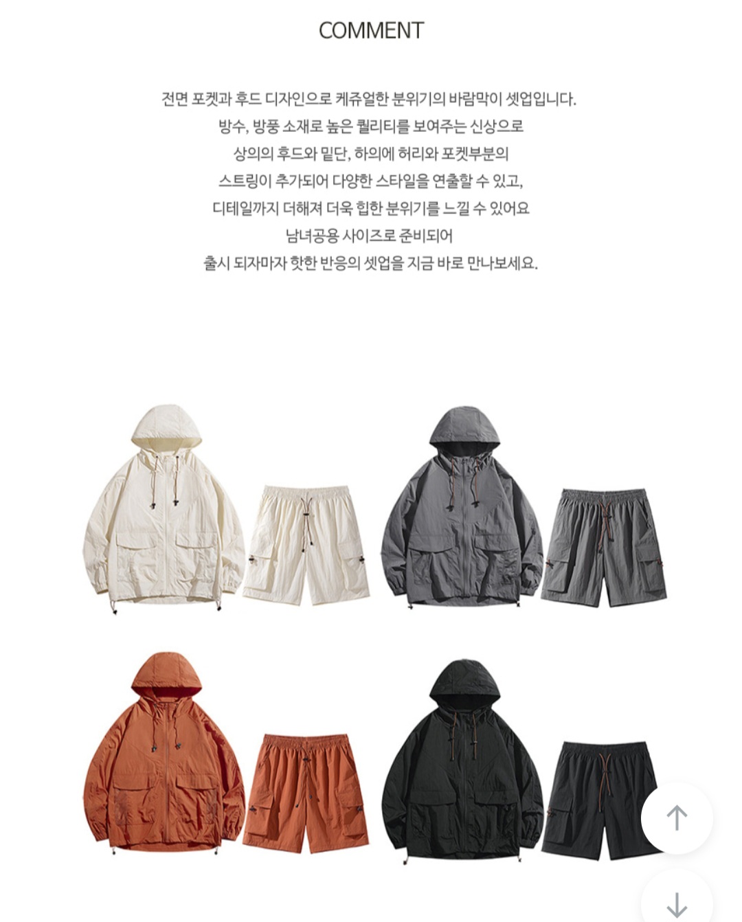 [지그재그] 남여공용 커플 바람막이 후드+반바지 셋업 1+1 2세트 (36,800원/무료) > 국내핫딜