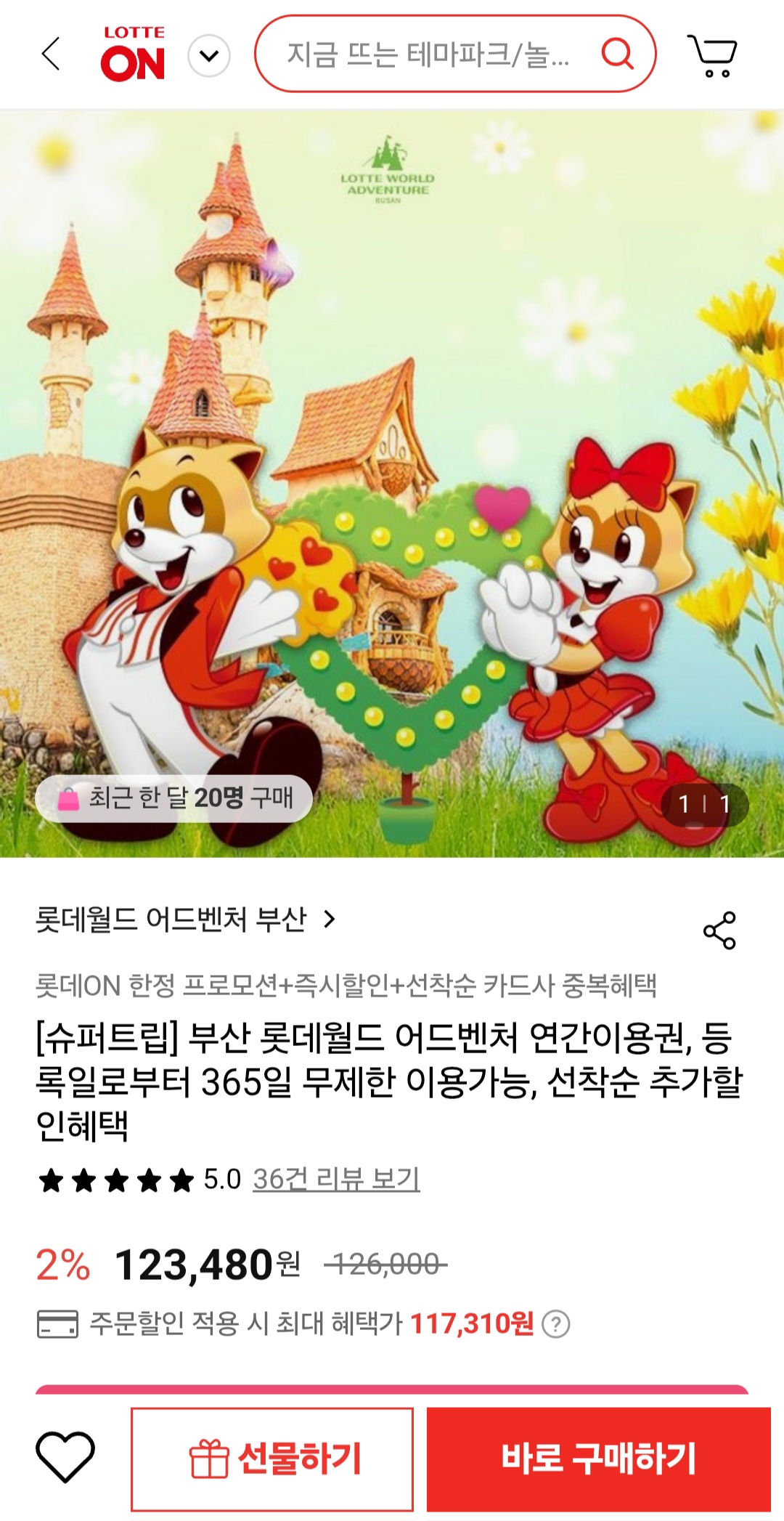 [롯데온] 부산 롯데월드 어드벤처 연간이용권 (117,310원/무료) > 국내핫딜