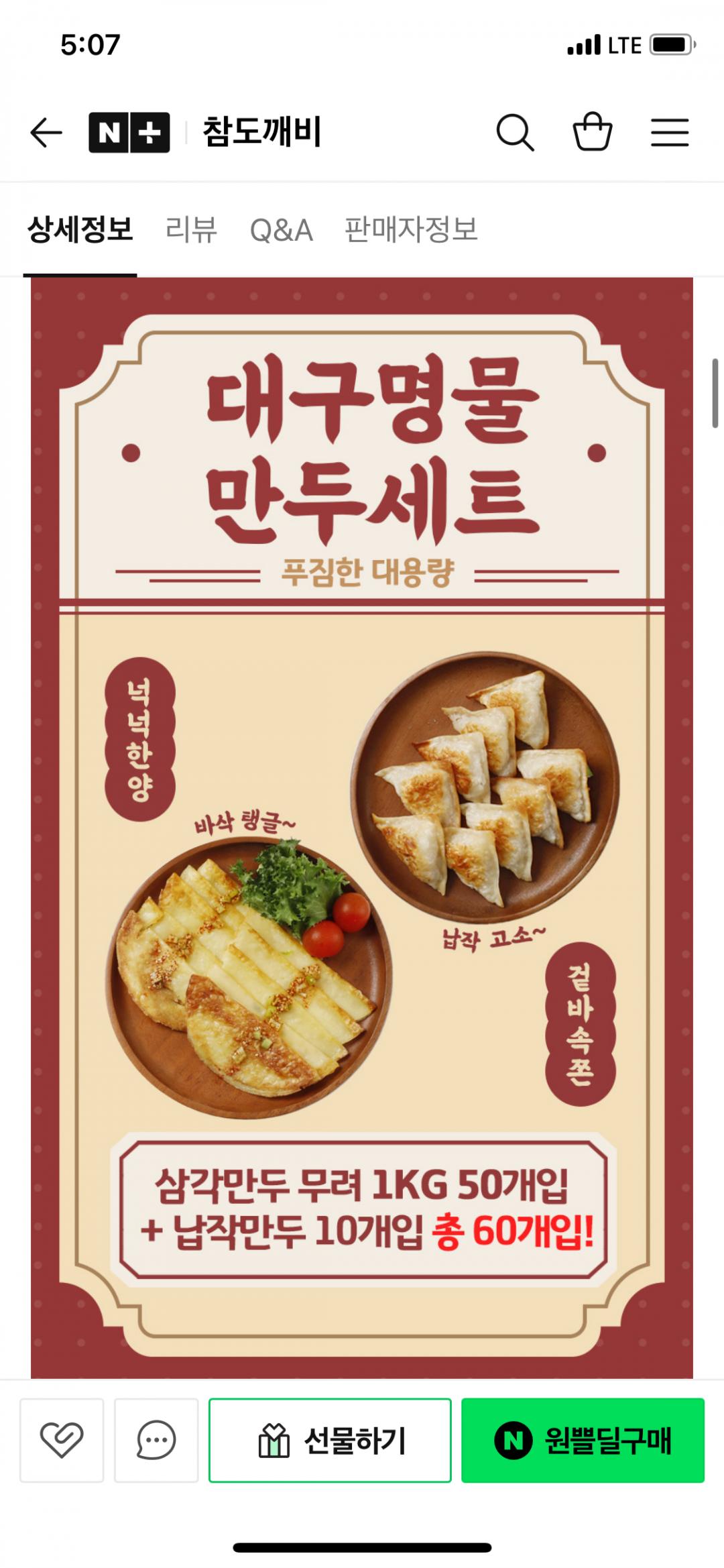 [네이버] 대구 서문시장 삼각 세모만두 50개입 + 납작만두 10개입 (10400원/무배)