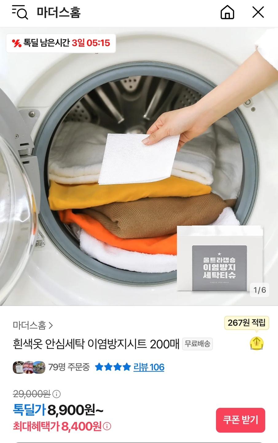 이염방지 시트 200매 세탁하실때나 흰색옷 이염방지에
