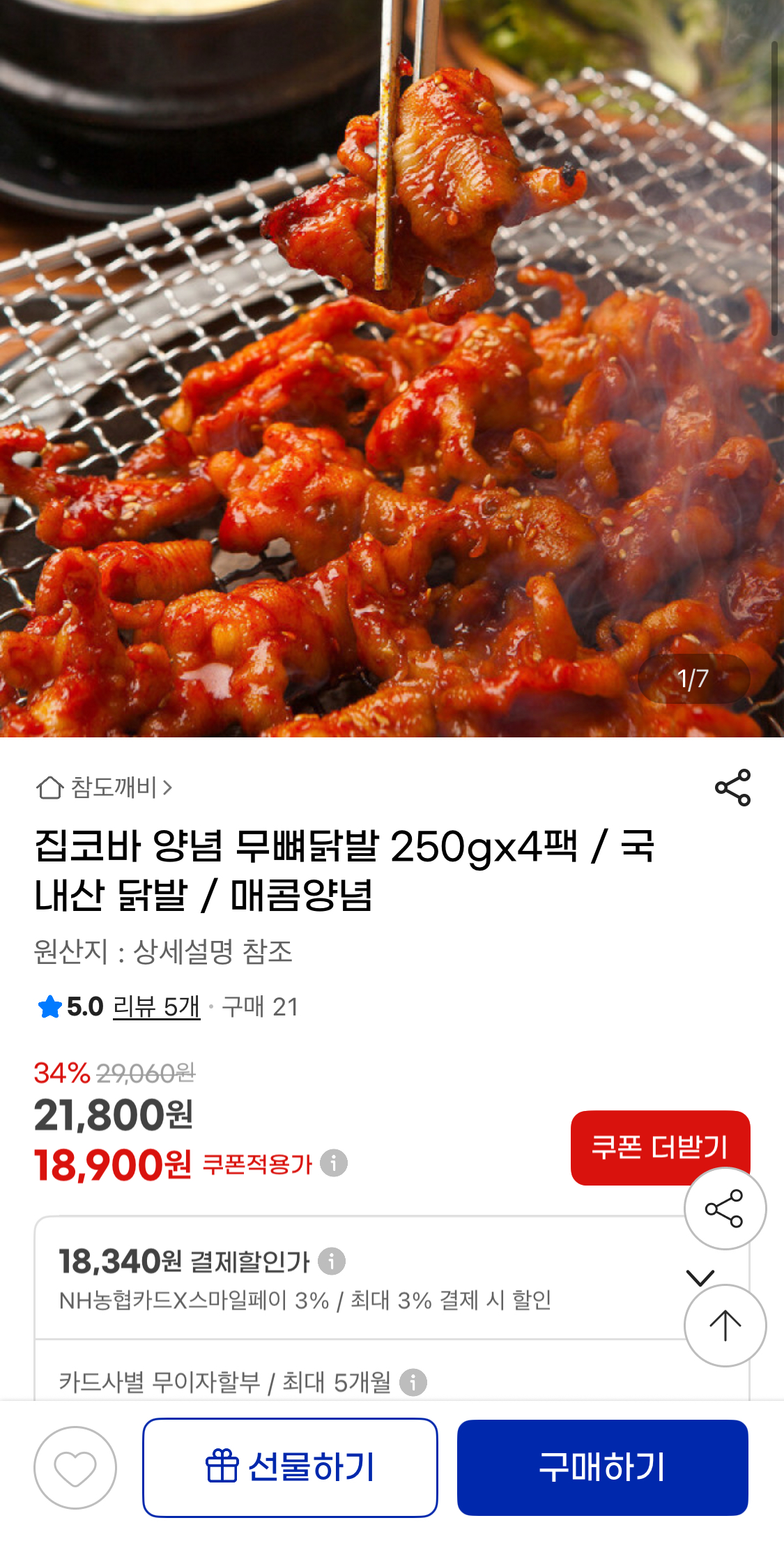 [지마켓] 집코바 양념 무뼈닭발 250gx4팩 (18340원/무배) > 국내핫딜