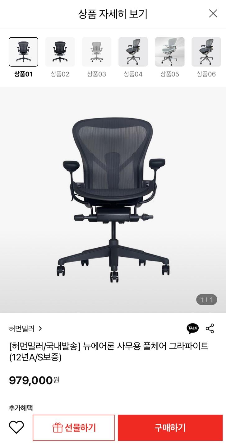 [롯데온] 허먼밀러 뉴에어론 사무실 풀체어 그라파이트 (979,000원/무료) > 국내핫딜