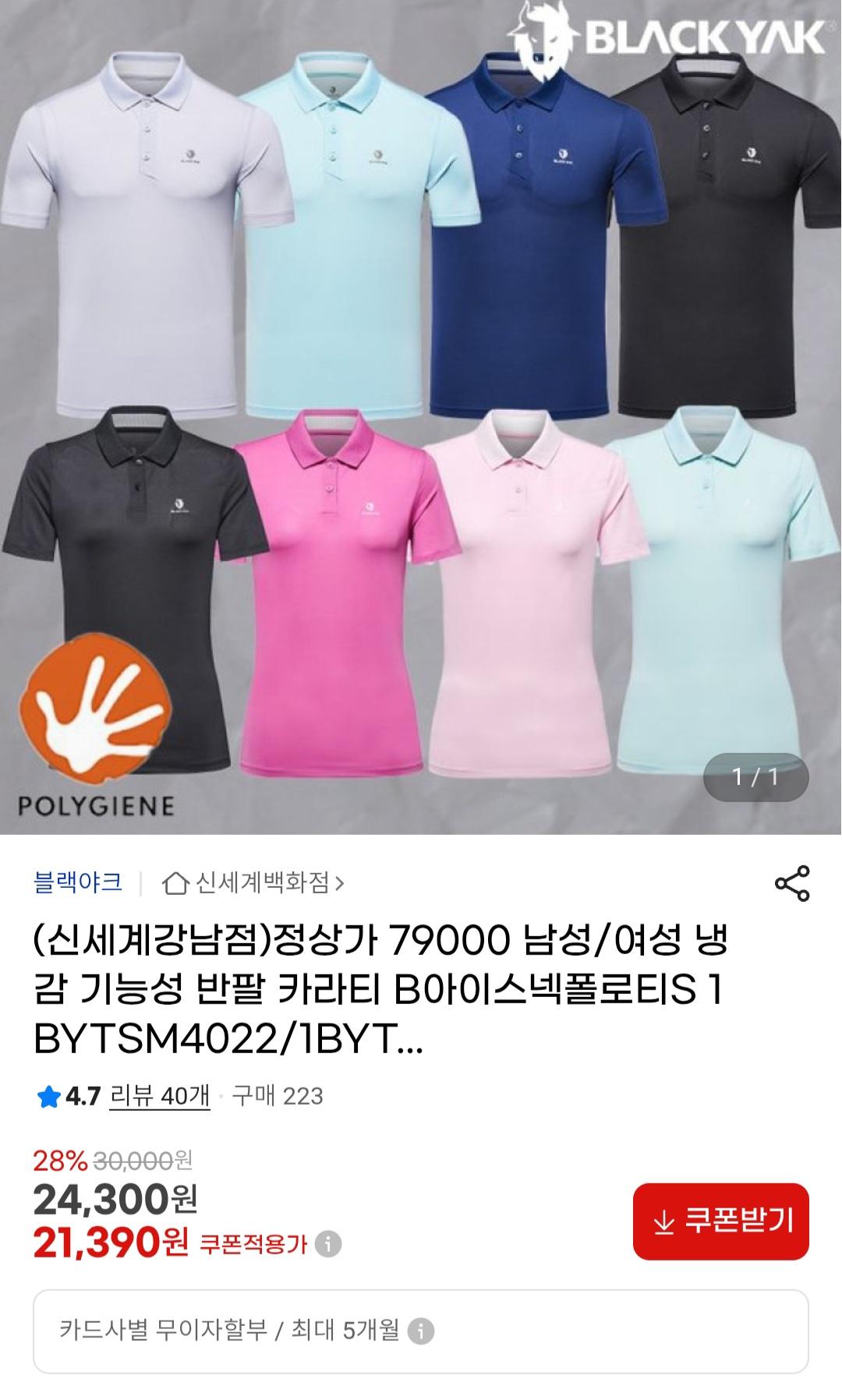 [지마켓]블랙야크 남성/여성 냉감 기능성 반팔 카라티(21,390원/무배) > 국내핫딜
