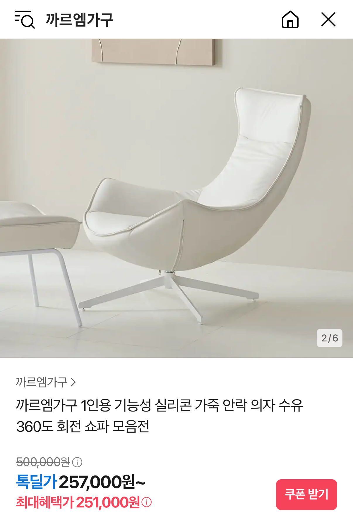 기능성 1인용 소파로 최종가 257,000원 나옵니다